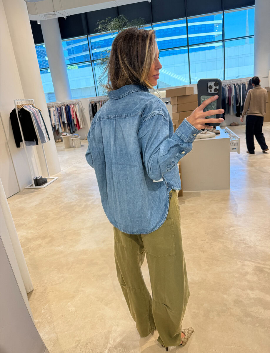 CROPPED BOXY DENIM SHIRT | LIGHT WASH