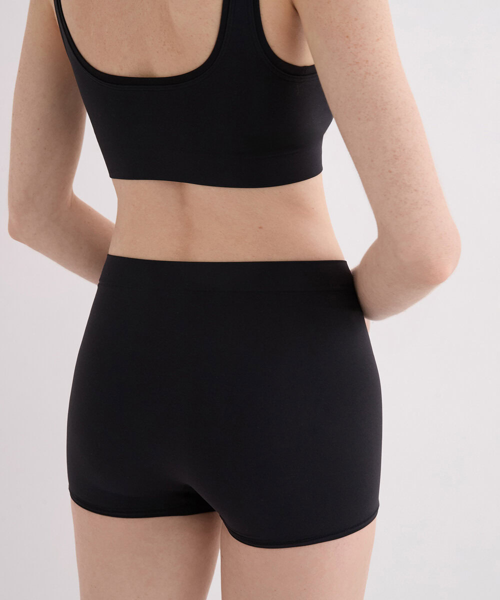 תחתוני מיקרו קצרים בגזרה אמצעית וכיסוי מלא, עם בד רך במיוחד ועיצוב חלק ללא תפרים לנוחות מקסימלית. מגיעים בצבע שחור ובמארז של שלושה זוגות.