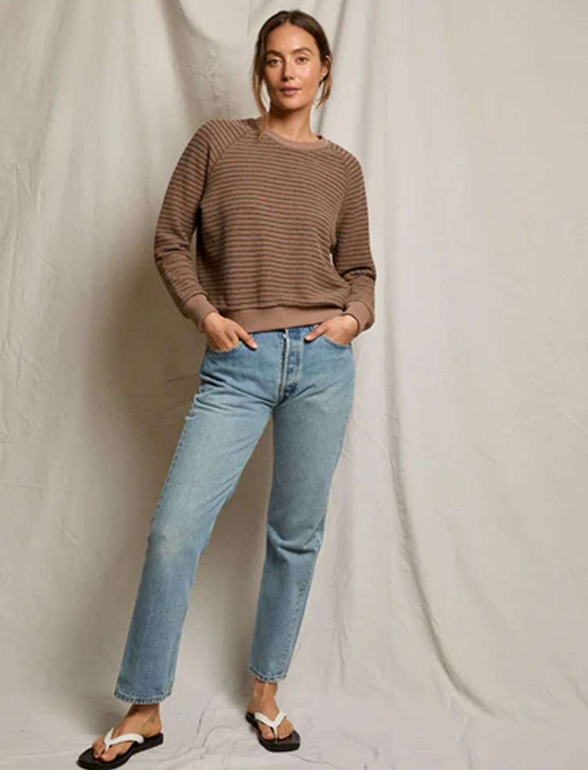 the alexi sweatshirt is a soft, luxurious take on our classic lennon top, designed in french terry for a refined feel. it features an easy raglan sleeve and fit that adds subtle shape and comfort. perfect for lounging or layering, this sweatshirt is made to be lived in.