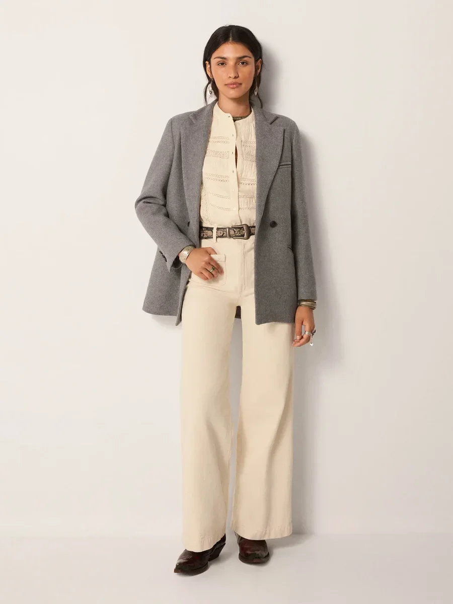 Styled here with the Blanca Offwhite blouse and Hamlet pant, cinched with the Guadalupe belt for quiet contrast. It also works over dresses, where it adds grounded sharpness to softer shapes.