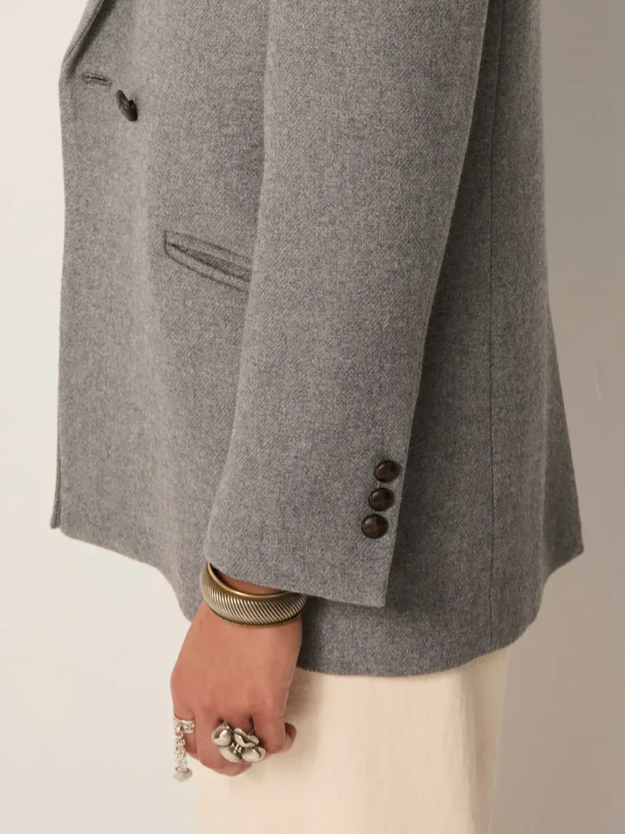 Crafted in a wool blend with a soft hand, this blazer balances muted tone with sharp tailoring. Its structure is versatile, understated, and refined.