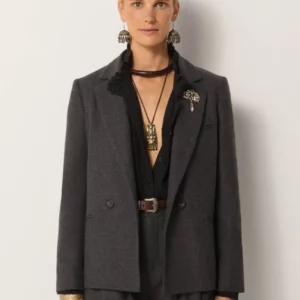 Cut in a soft wool blend, this blazer brings refined neutrality with a subtle warmth. Its clean tailoring gives it versatility, a piece that elevates both everyday and occasion wear.
