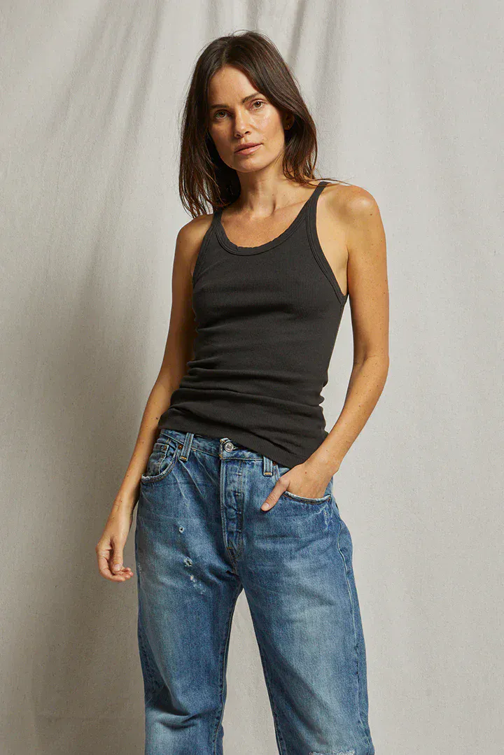 גופיית ריב צמודה לנשים עם מפתח צוואר גבוה וגזרה מחמיאה לגוף.
