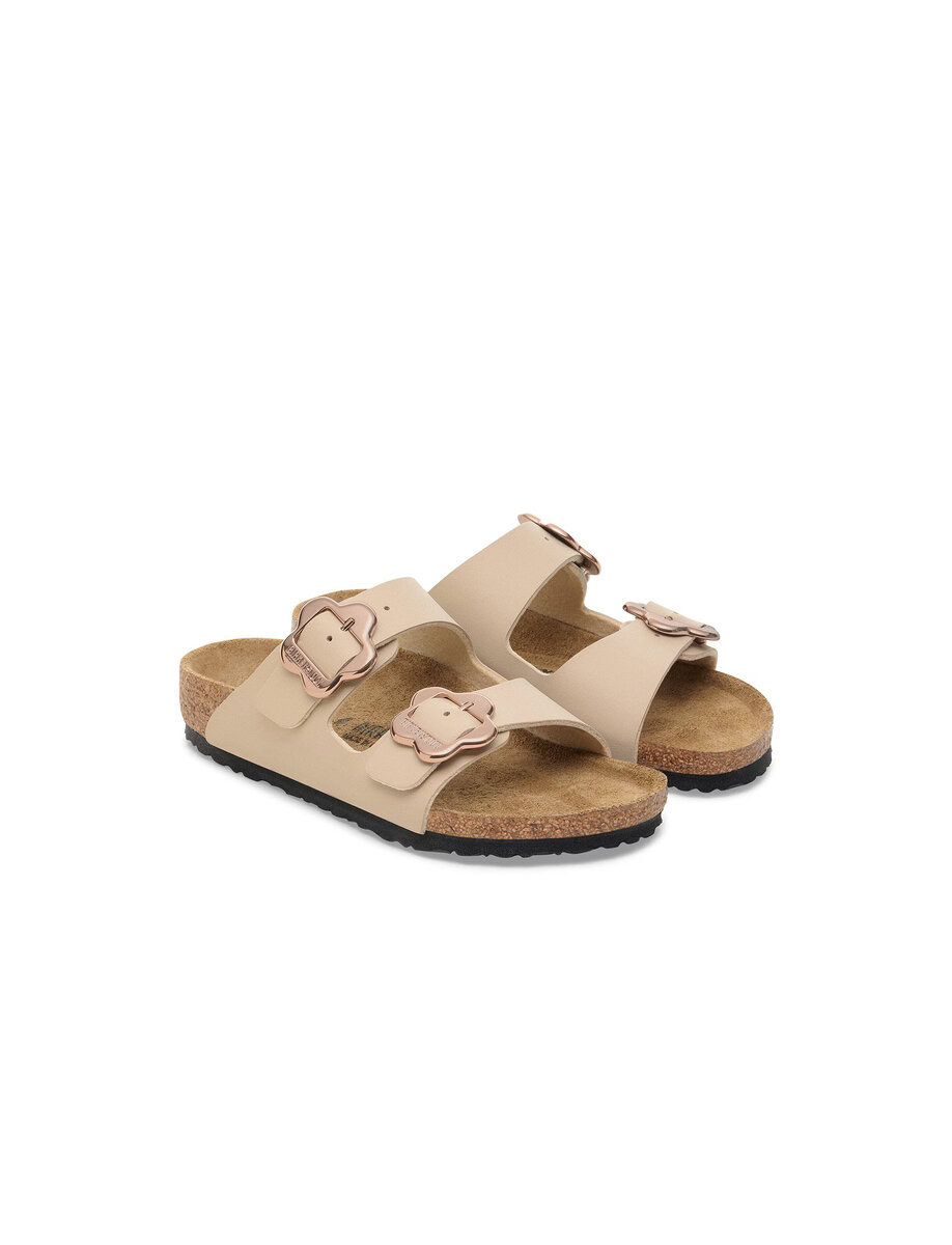 The BIRKENSTOCK Arizona is a genuine classic that has been delighting wearers with its timeless design for decades. The two-strap model fits kids’ feet perfectly – even during boisterous play! This version features fun floral buckles. The color-coordinated outsole rounds off the shoe’s look of sophistication. The upper is made from the skin-friendly, hard-wearing synthetic material Birko-Flor®.