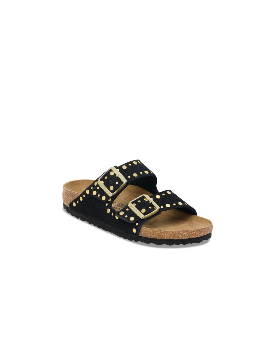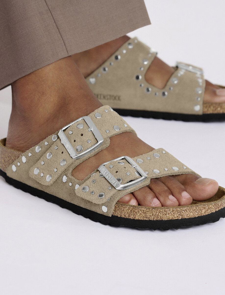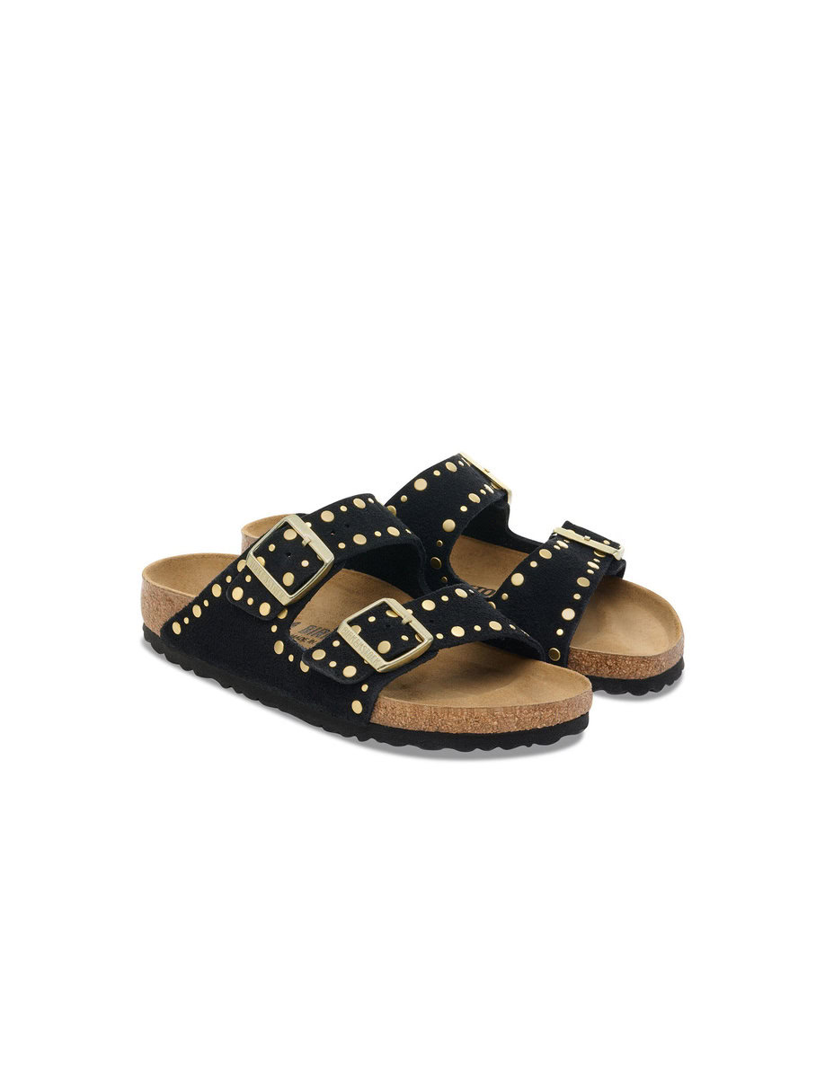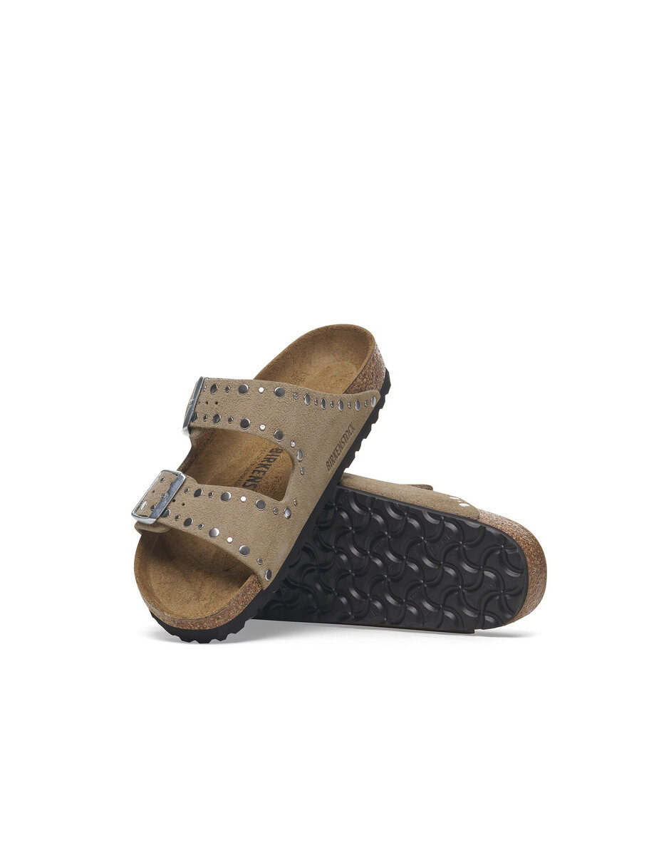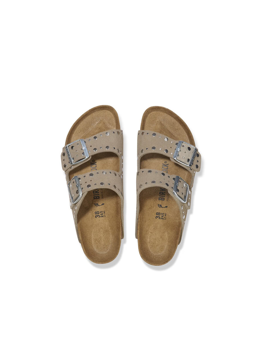 The BIRKENSTOCK Arizona is a genuine classic that has been delighting both men and women for decades. This simple sandal with two straps stands for timeless design and has long held cult status thanks to its comfort factor. This version features precisely positioned rivets with no back which are made to sit firmly in the leather in an elaborate production process without going too deep, making them unnoticeable when the shoe is worn. It’s quite an eye-catcher! The upper is made from soft suede which hugs the foot like a second skin.