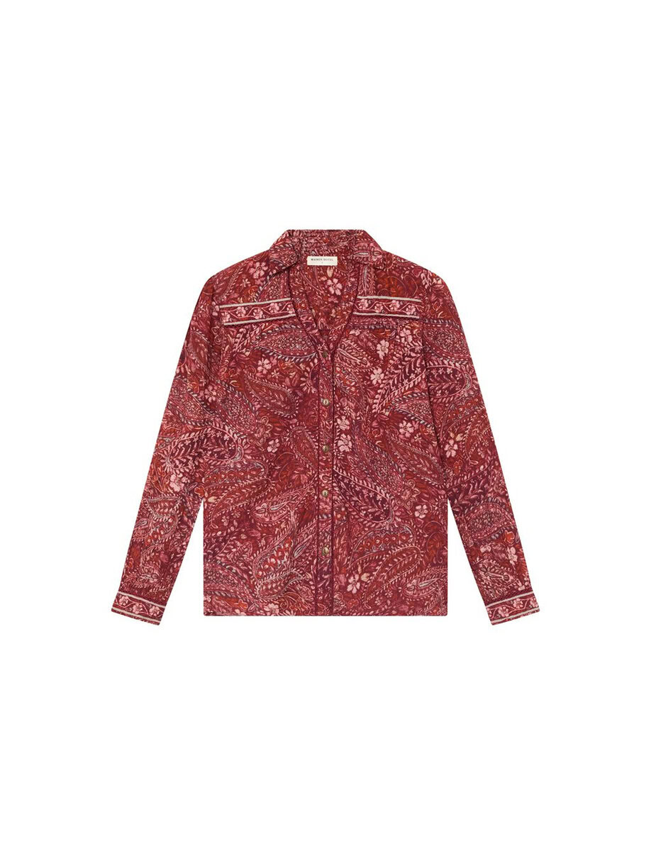 חולצה מכופתרת בגזרה קלאסית עם טוויסט של הדפס אדום עמוק המעניקה עניין לבד.