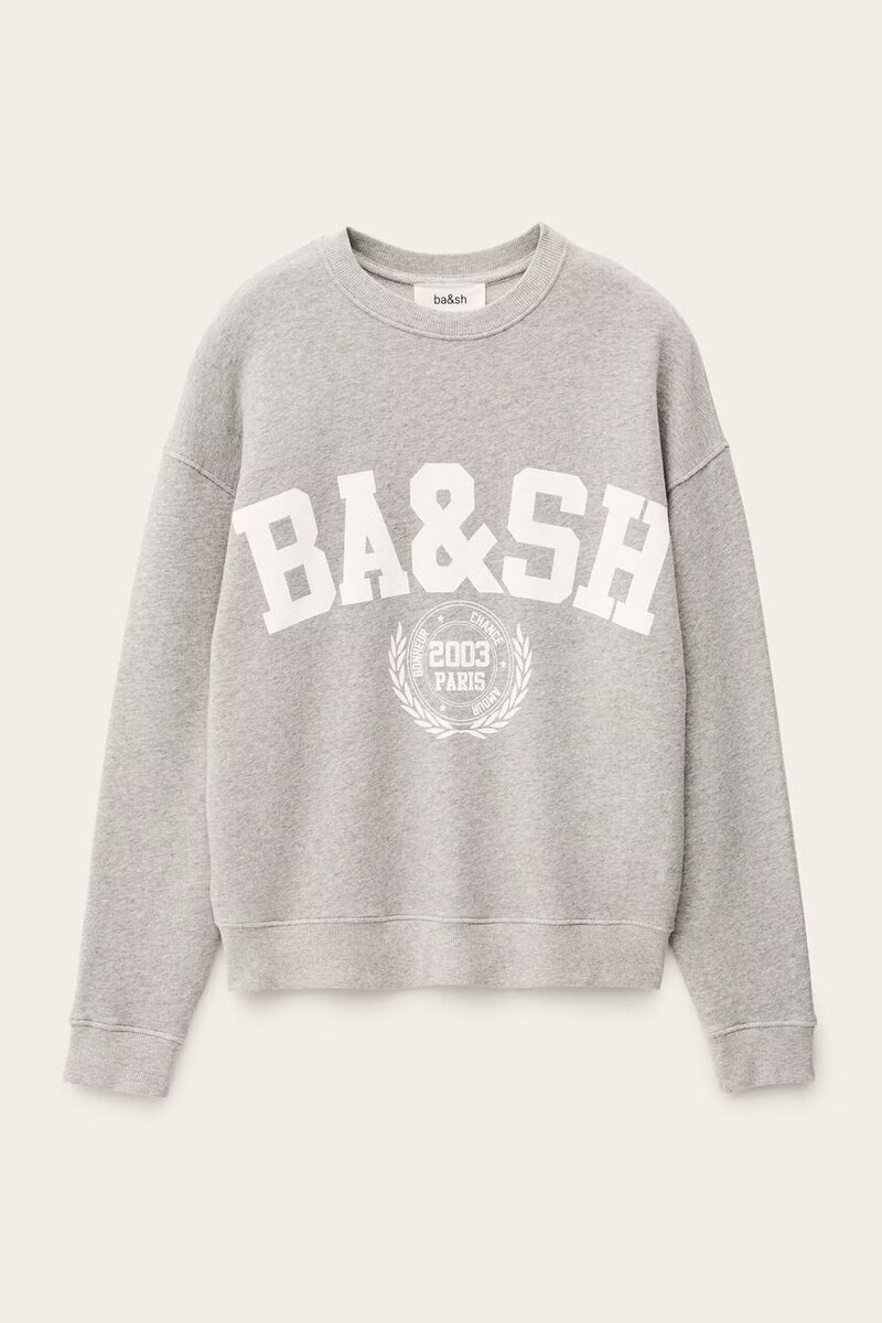 קולג’ סווטשירט אפור בסגנון בויפרנד, עשוי 100% כותנה אורגנית.