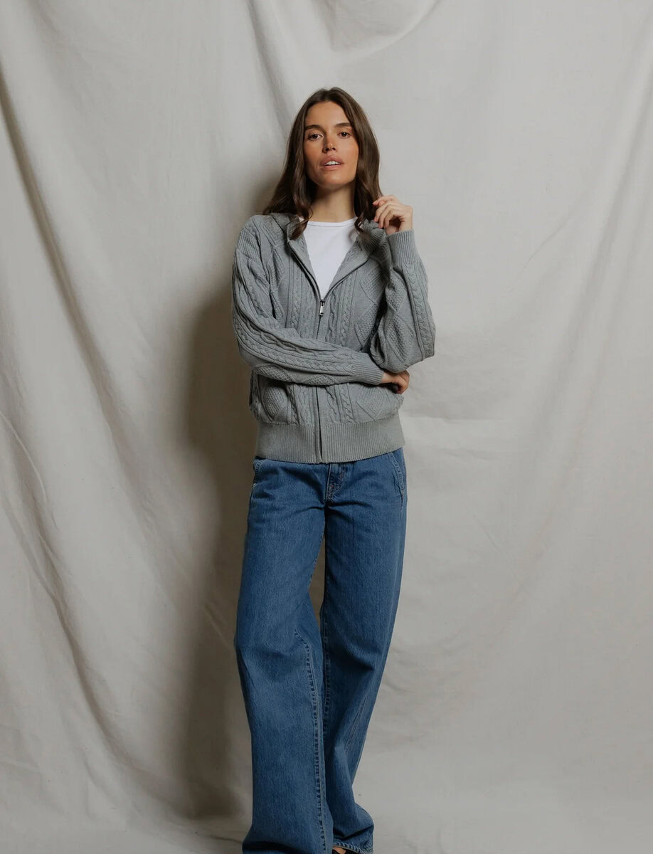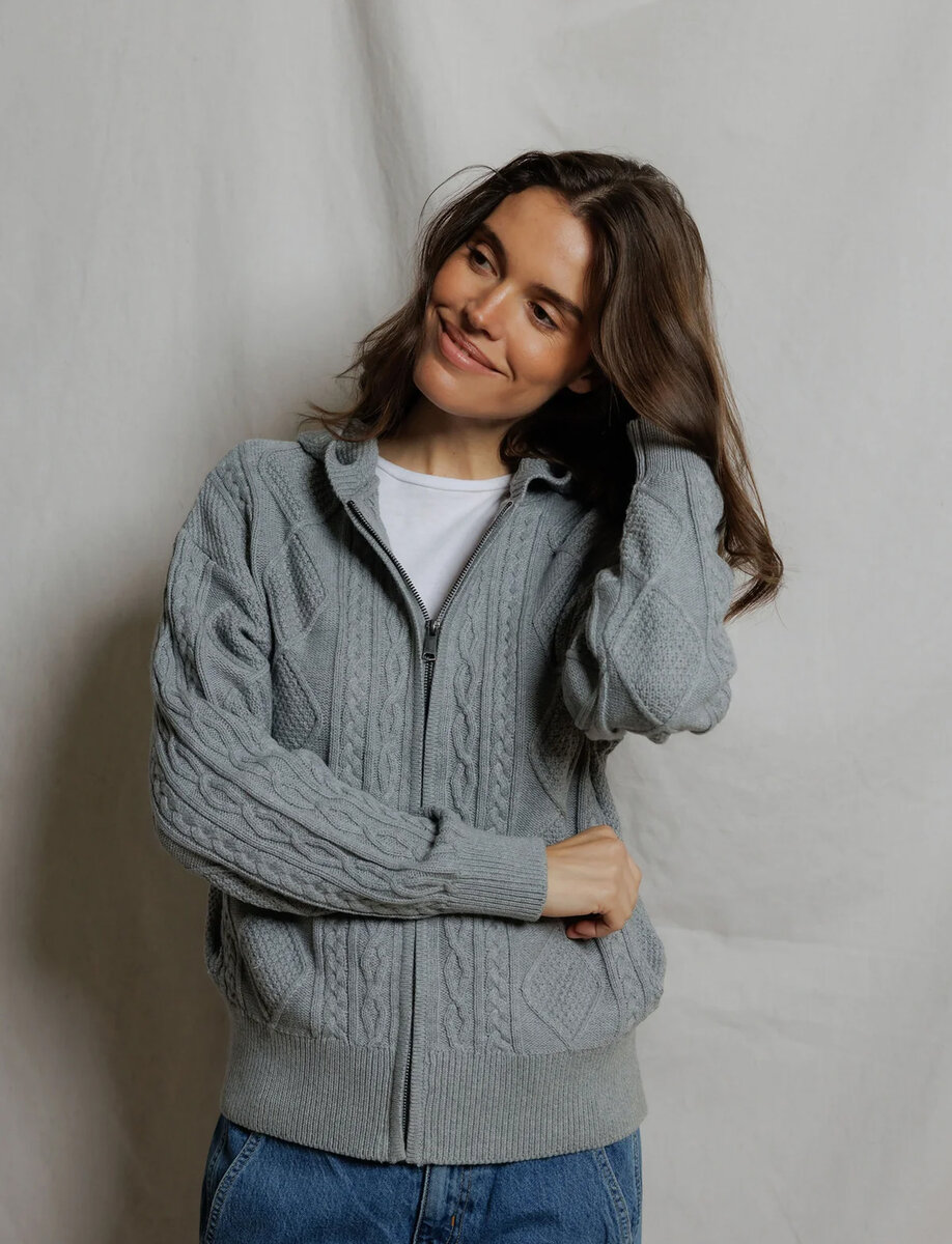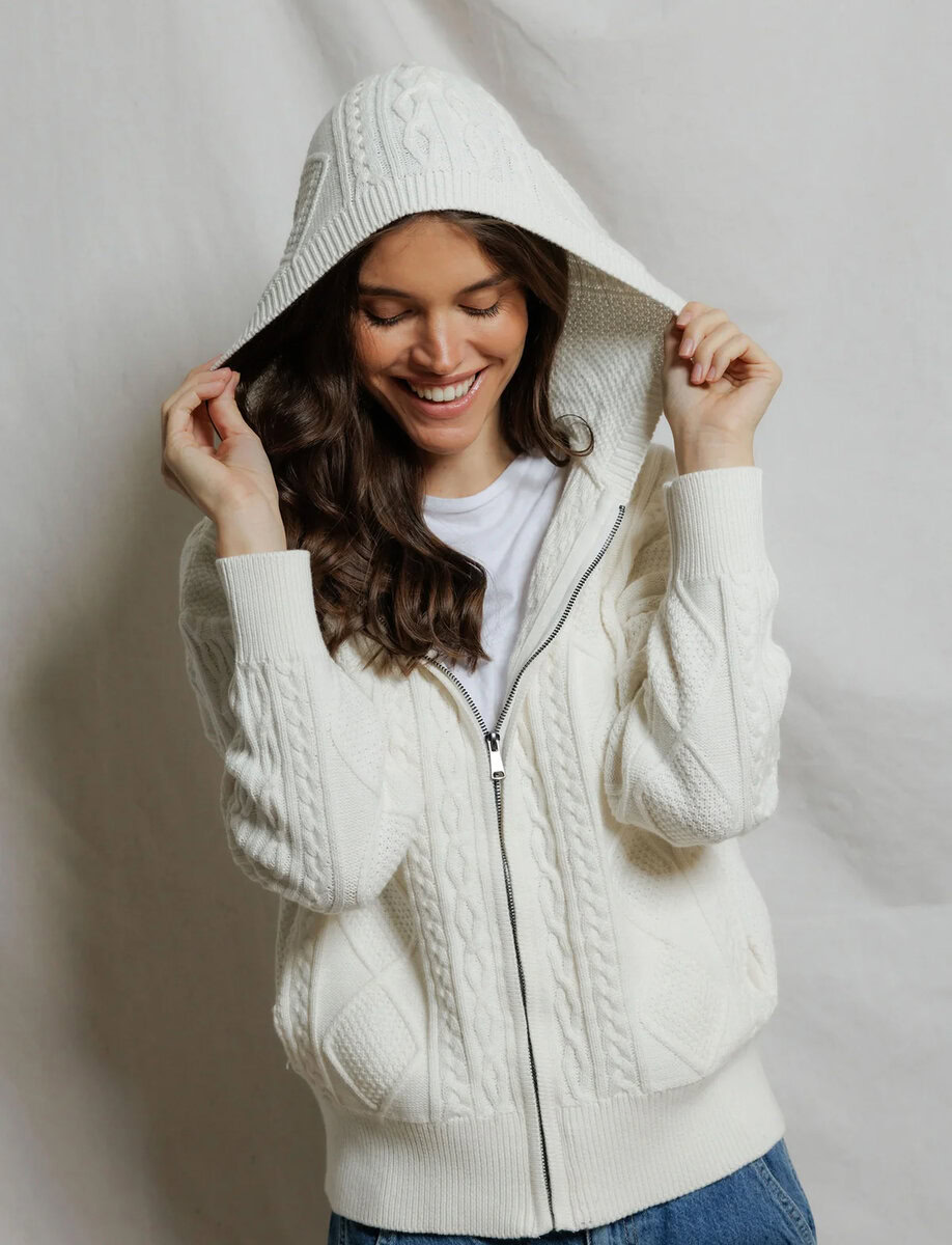 BRADY CABLE KNIT ZIP-UP HOODIE