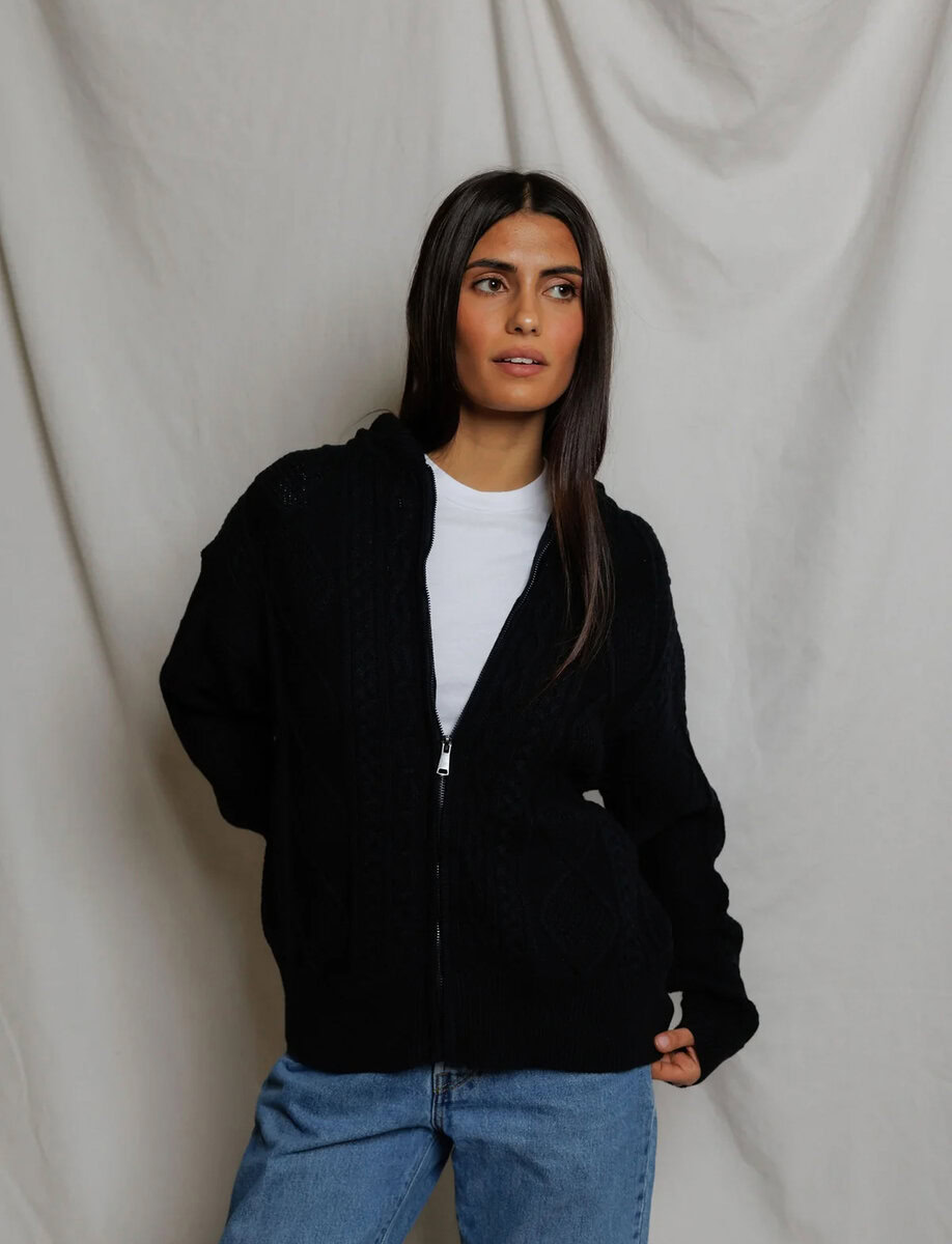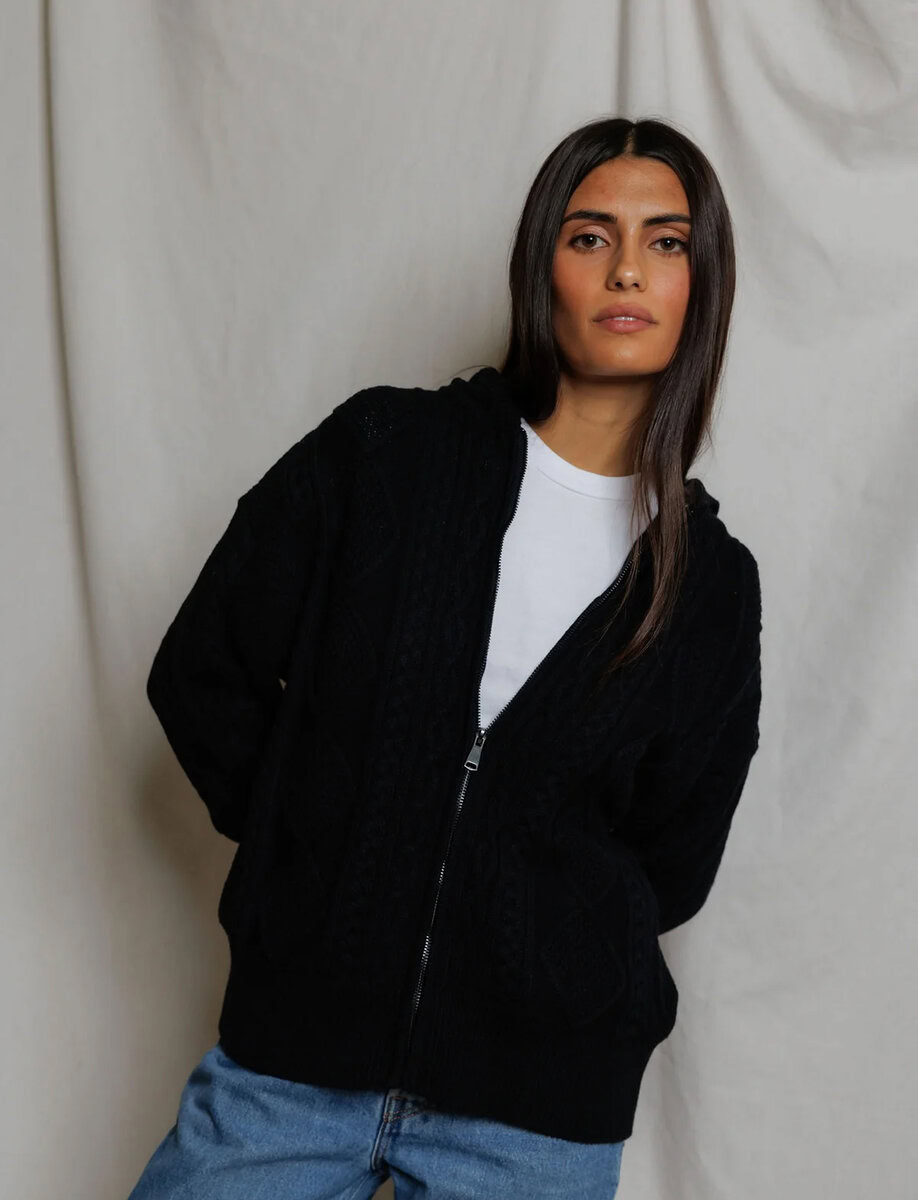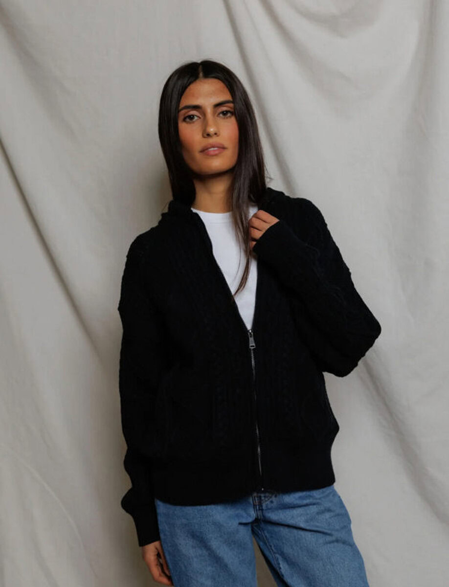BRADY CABLE KNIT ZIP-UP HOODIE