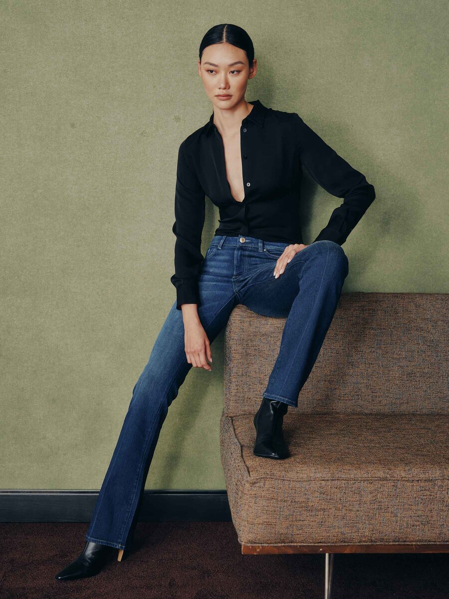 ג’ינס Bridget Bootcut בגזרת בוטקאט גבוהה ומחמיאה עם אורך 33 אינץ’.