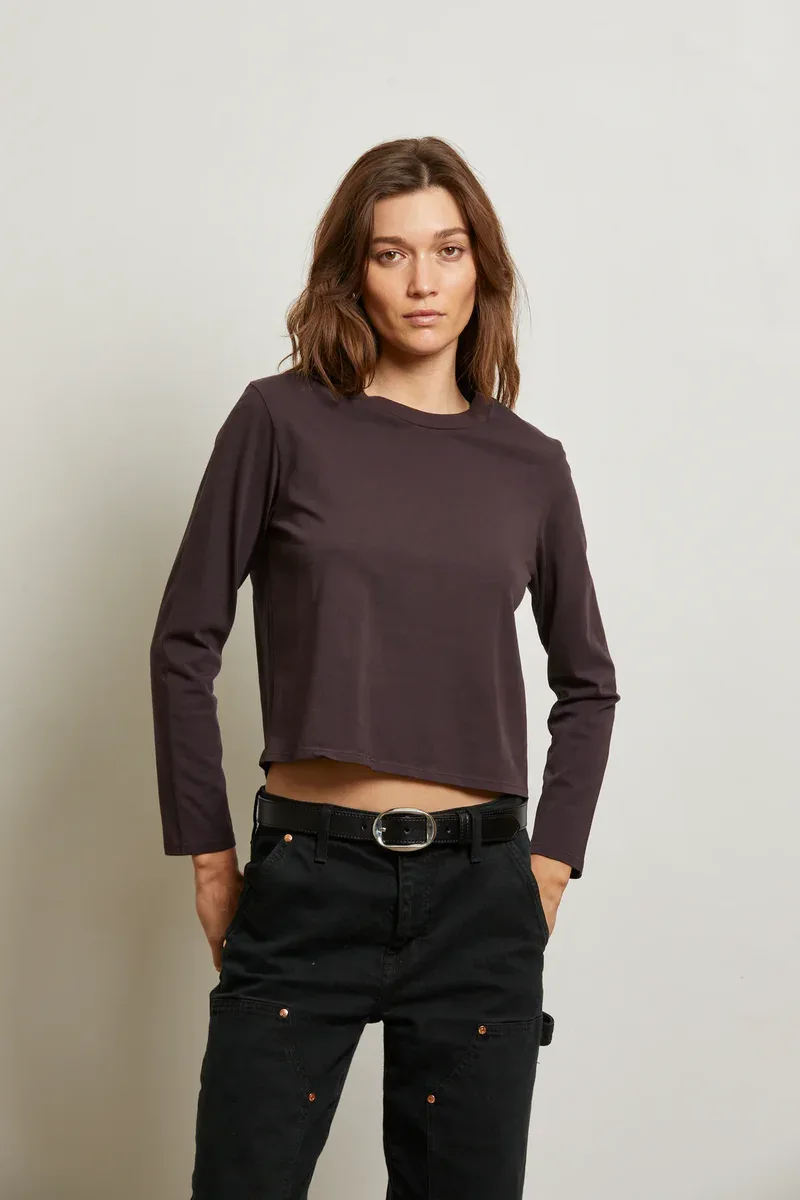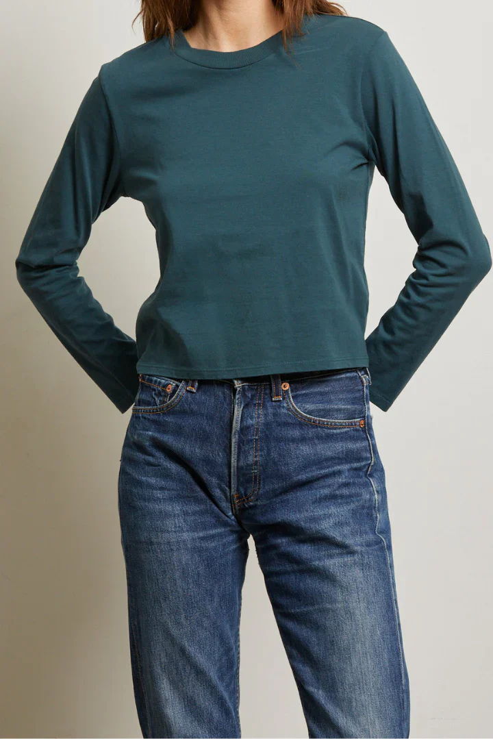 meet bruce, our long sleeve take on the beloved springsteen tee. made from soft, breathable supima cotton, this full-length crew is built for year-round wear. with a rounded neckline, true-to-size fit, and a hem that hits right at mid waist, it’s your new not-so-basic basic.