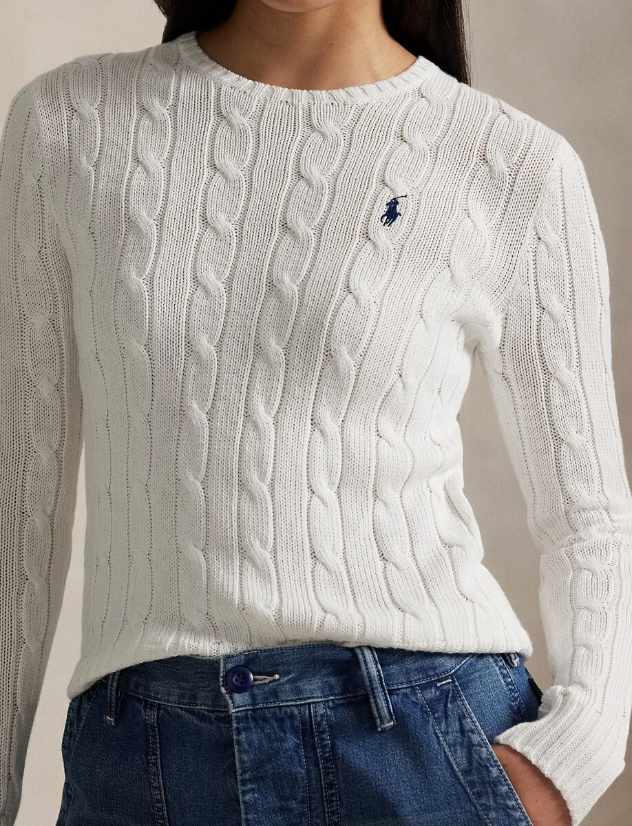 A Polo essential, this slim-fitting crewneck jumper is made with soft, combed cotton and showcases our signature cable-knit construction.