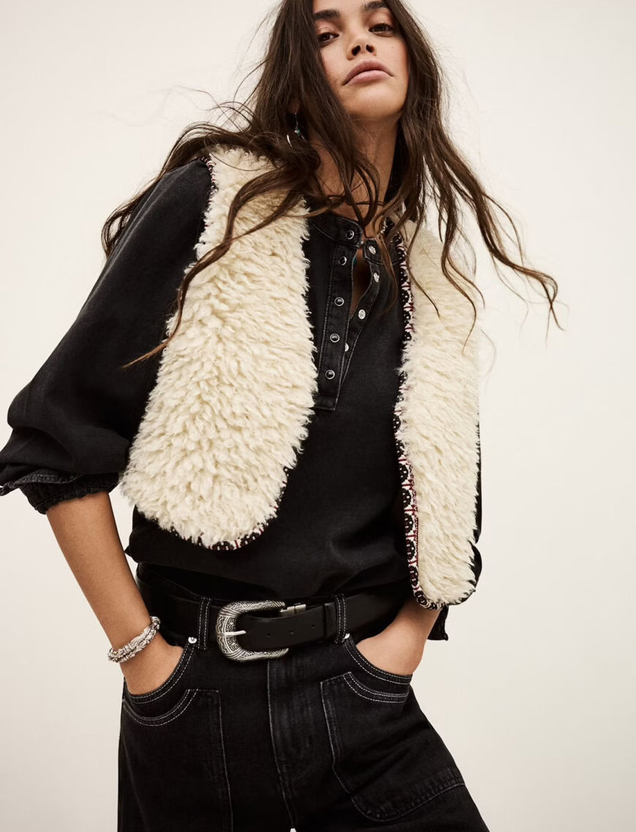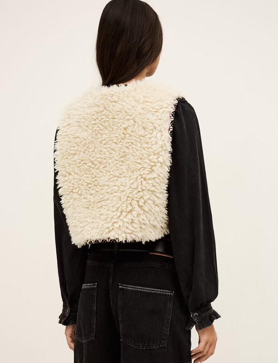 ווסט פרווה רכה בגוון שמנת, בעיצוב שמעניק חמימות ונפח עדין בלי להכביד.
