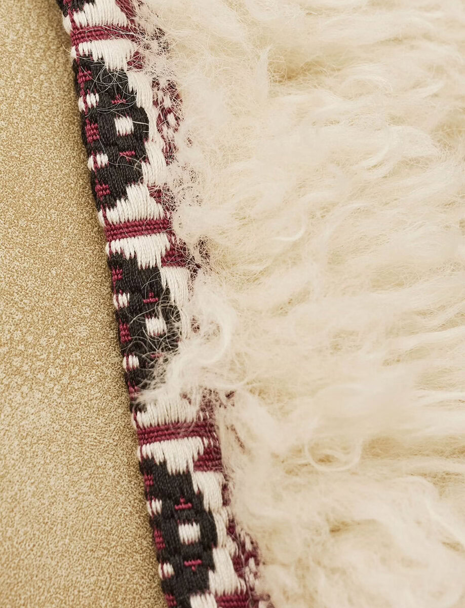 שולי הווסט מעוטרים בסרט רקום צבעוני שמוסיף נגיעה אתנית ייחודית ומדגיש את קווי המתאר שלו.