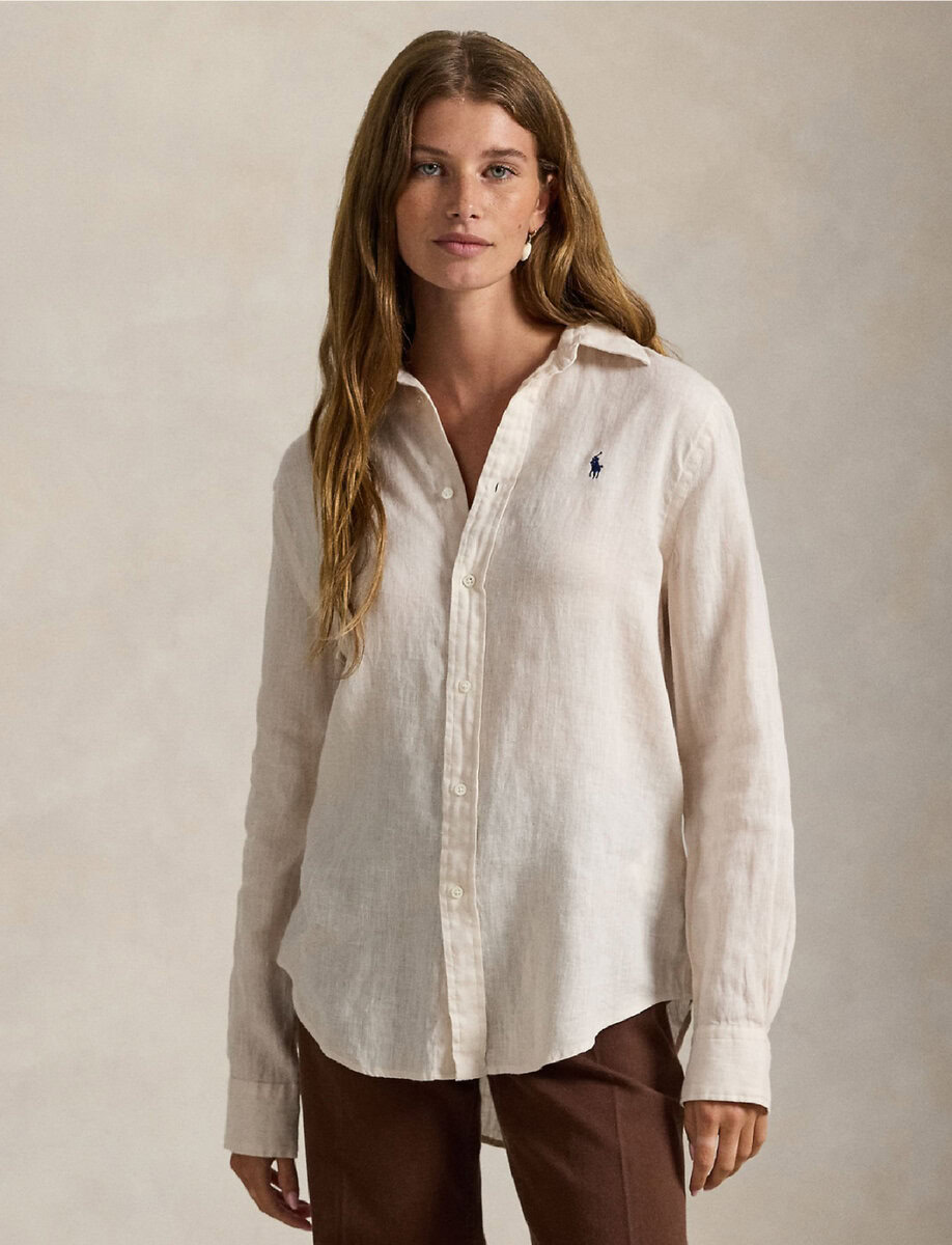 Woven with lightweight linen, this straight-fitting shirt is detailed with shell buttons and our meticulously embroidered signature Pony.