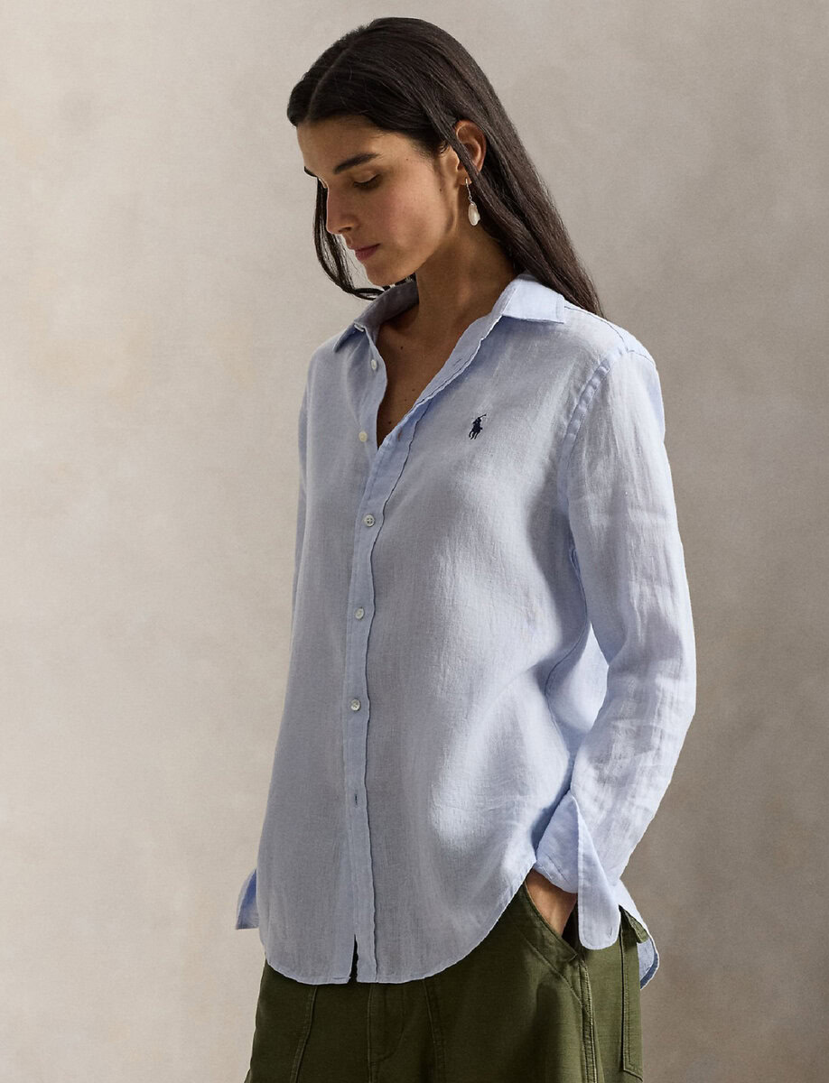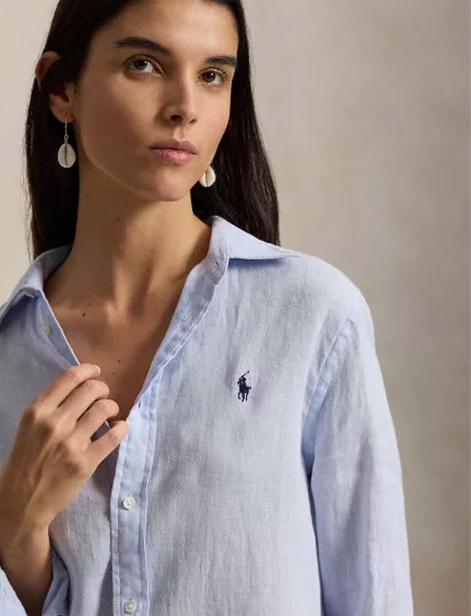 Woven with lightweight linen, this straight-fitting shirt is detailed with shell buttons and our meticulously embroidered signature Pony.