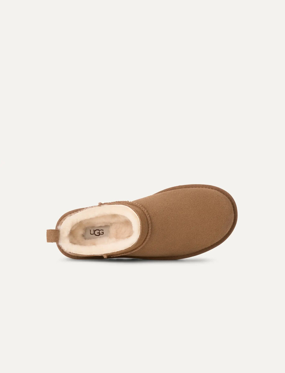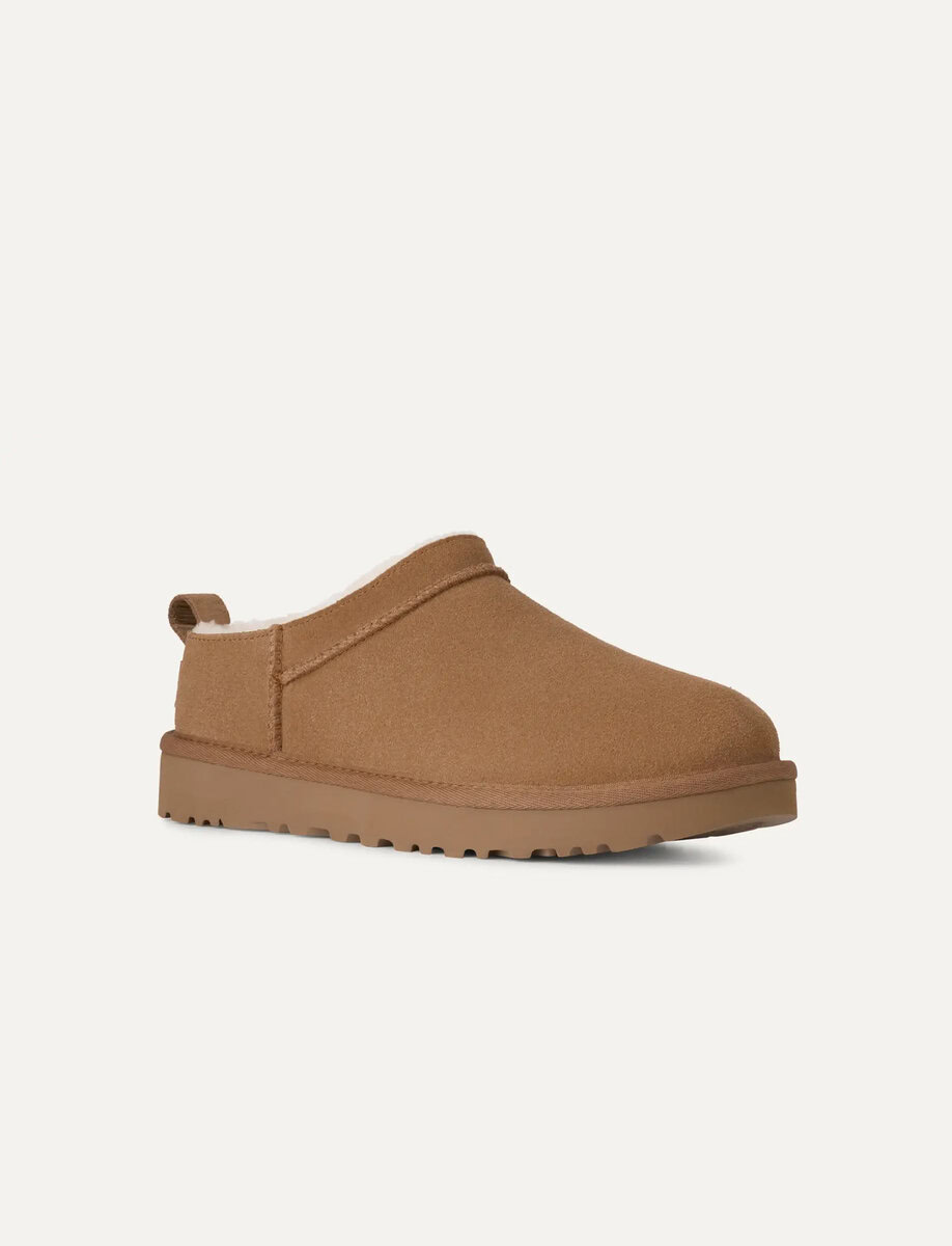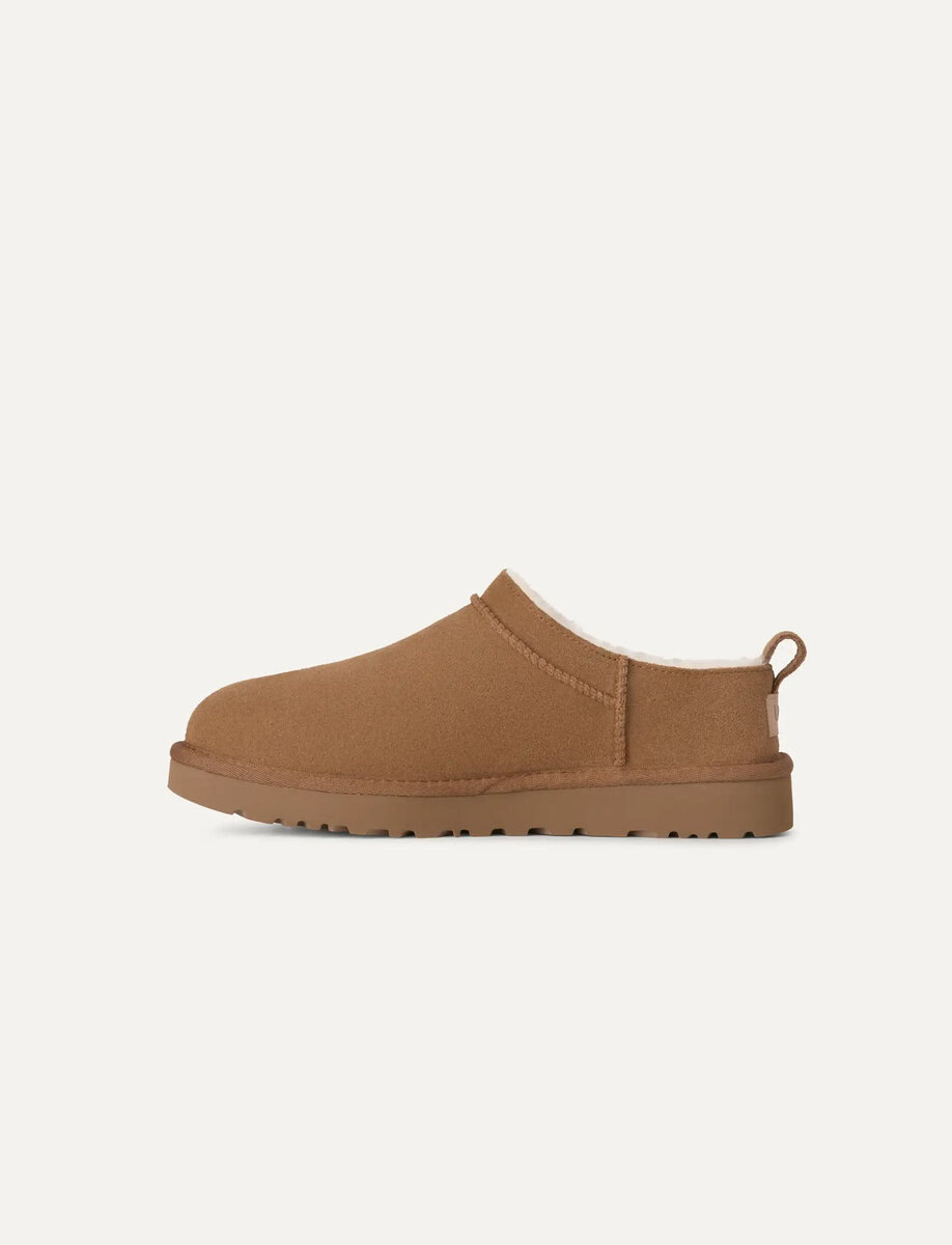 Our Classic Micro reimagines our fan-favorite Classic Boot with a new, low-profile design (and high-profile comfort). It has a genuine suede upper lined with mega-soft sheepskin that naturally regulates temperature, so you can wear socks — or not. The lightweight sugarcane EVA outsole delivers effortless support and adds that easy slipper feeling to every out-of-the-house venture.