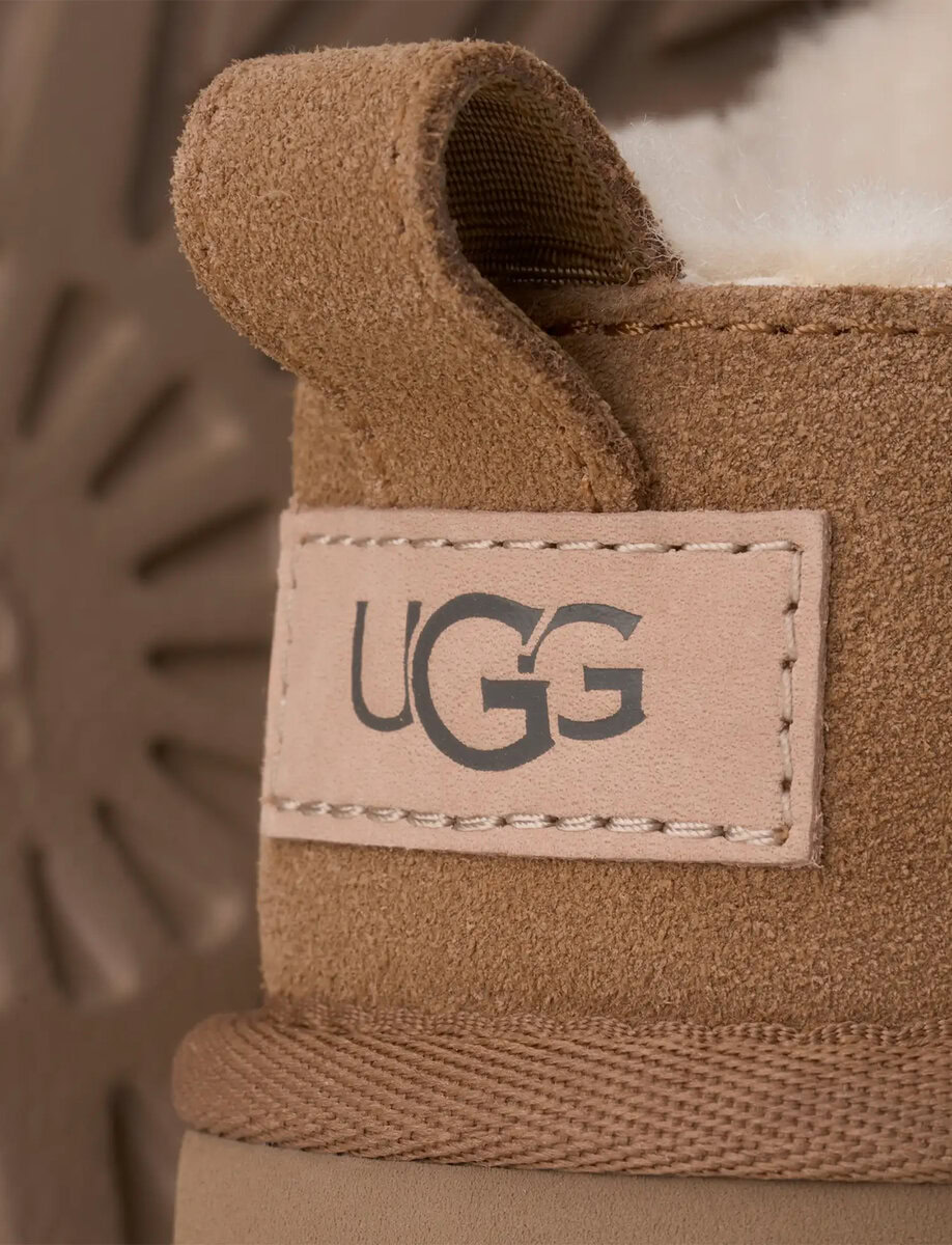 Woven label with The UGG® Logo on insole, The UGG® Logo embossed leather heel label