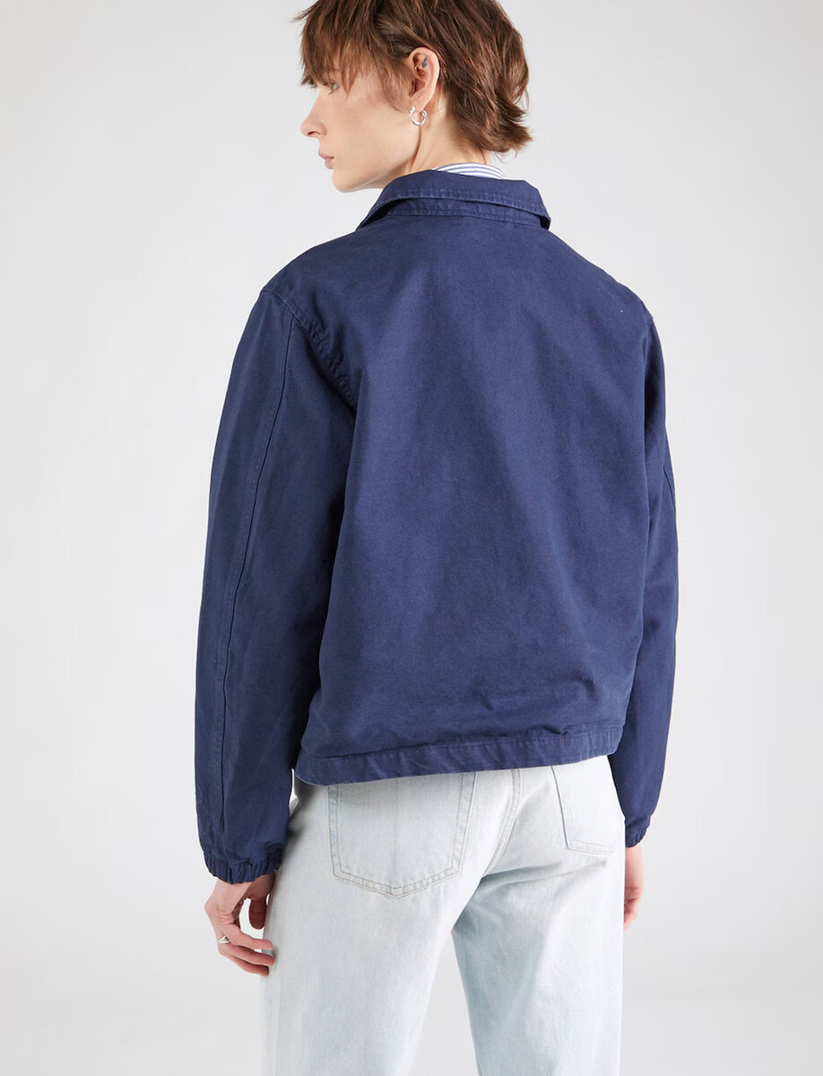 בד כותנה נעים, גזרה נקייה ועמידה עם רוכסן מלא וצווארון גבוה שנותן קצת אופי וגם שומר על חום כשצריך.
