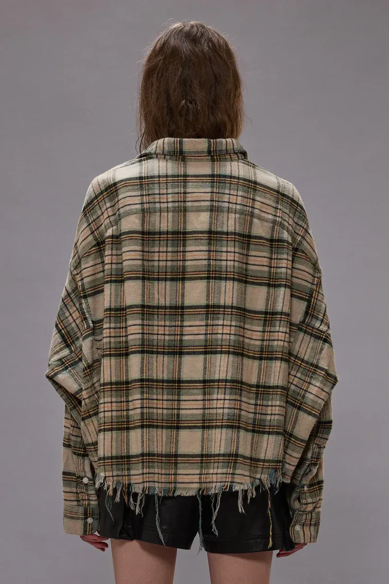 cropped work shirt featuring a relaxed fit and built from Japanese slub plaid.