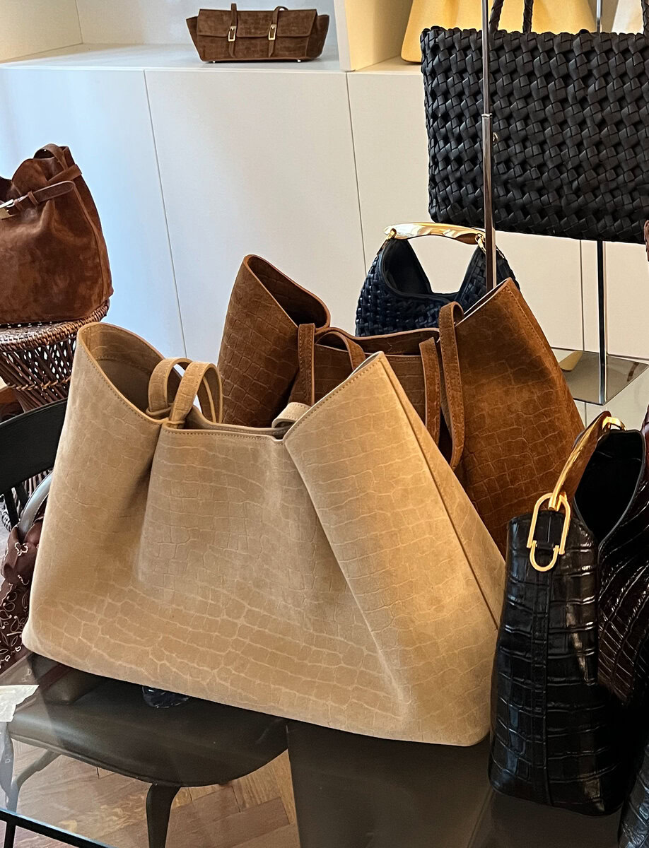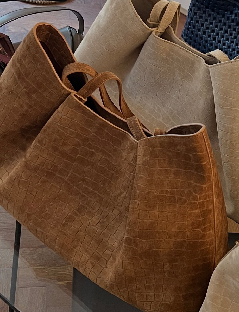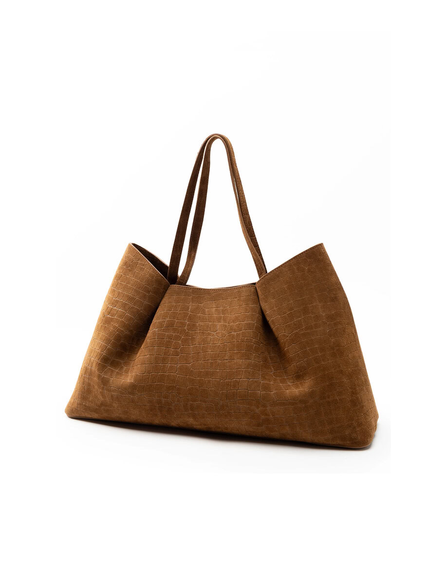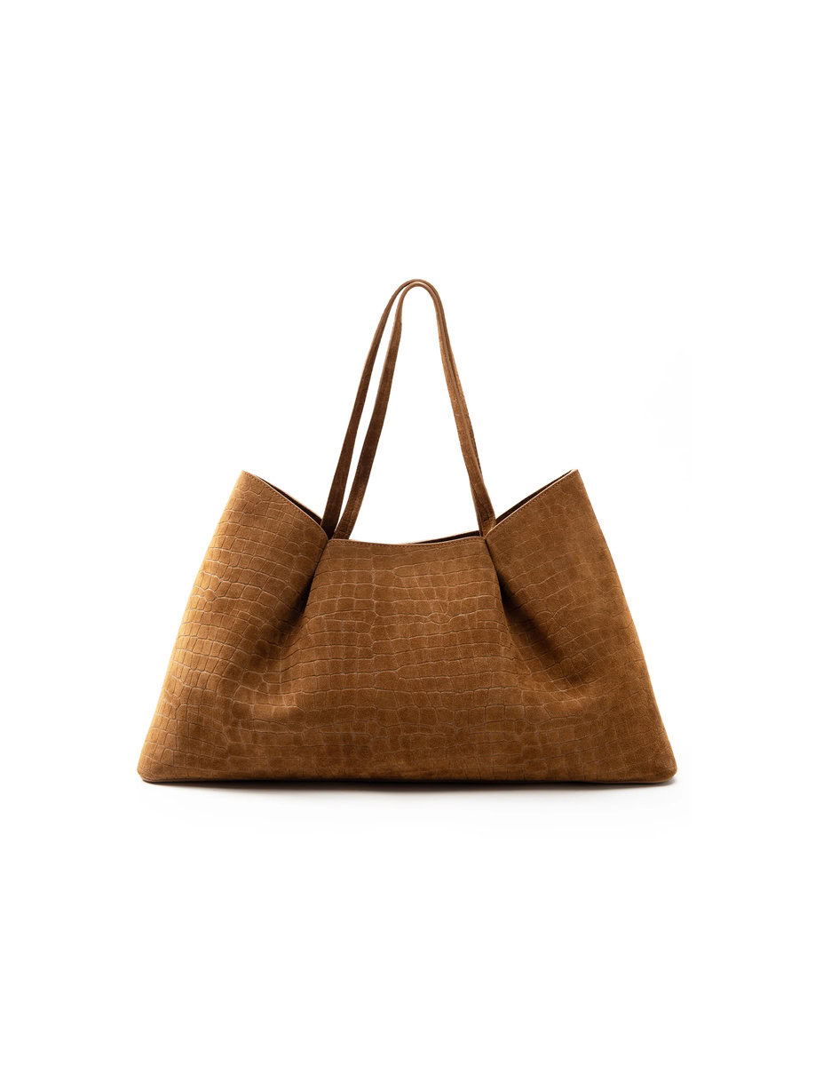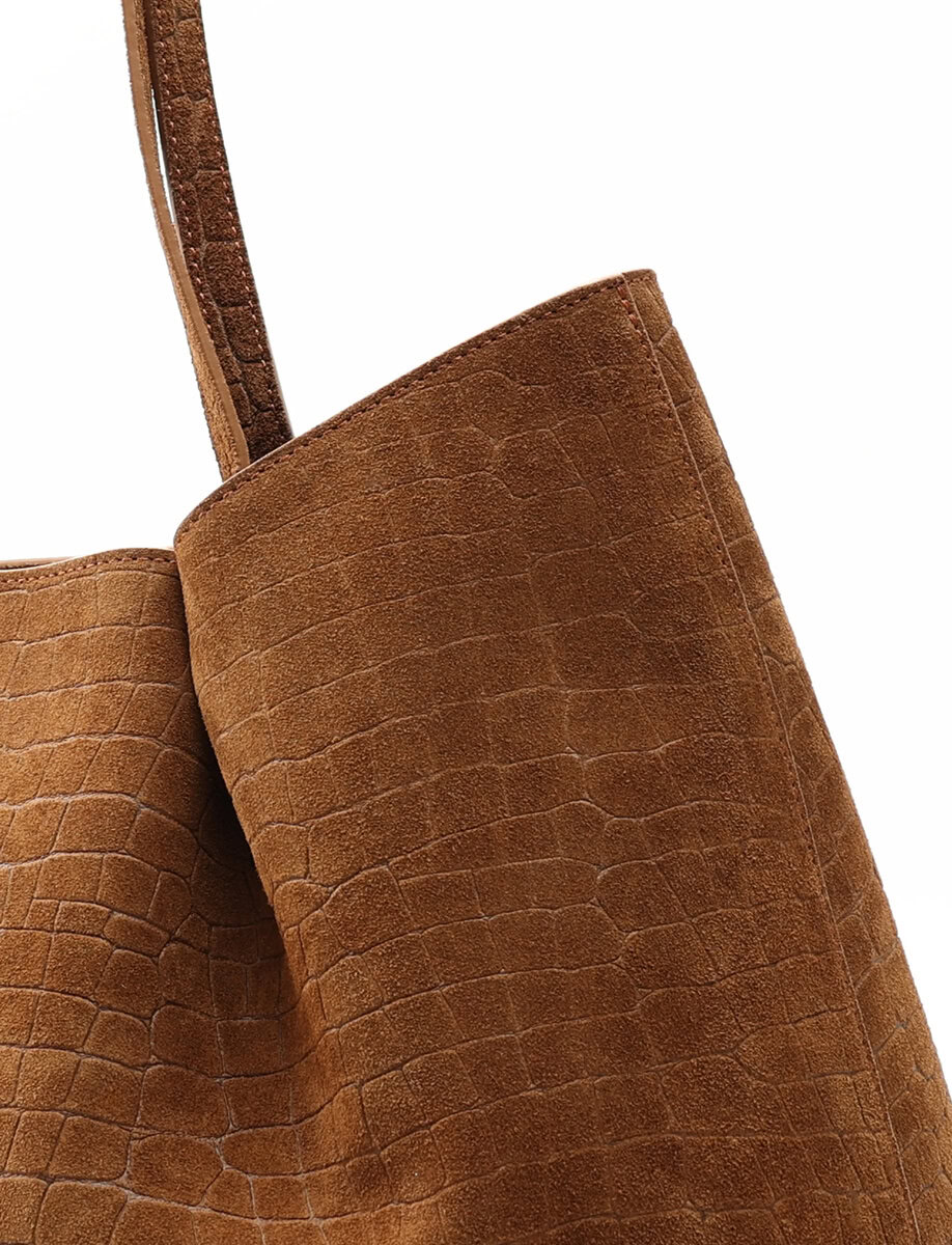 DIMPLE TOTE CROCO SUEDE | COGNAC
