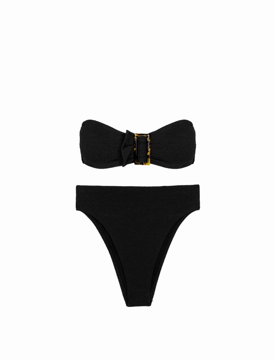 טופ הביקיני Firenze Sade Bandeau של ViX כולל מפתח צוואר פתוח, המודגש באבזם שרף בולט באזור החזה ועיטור מלמלה שובב.