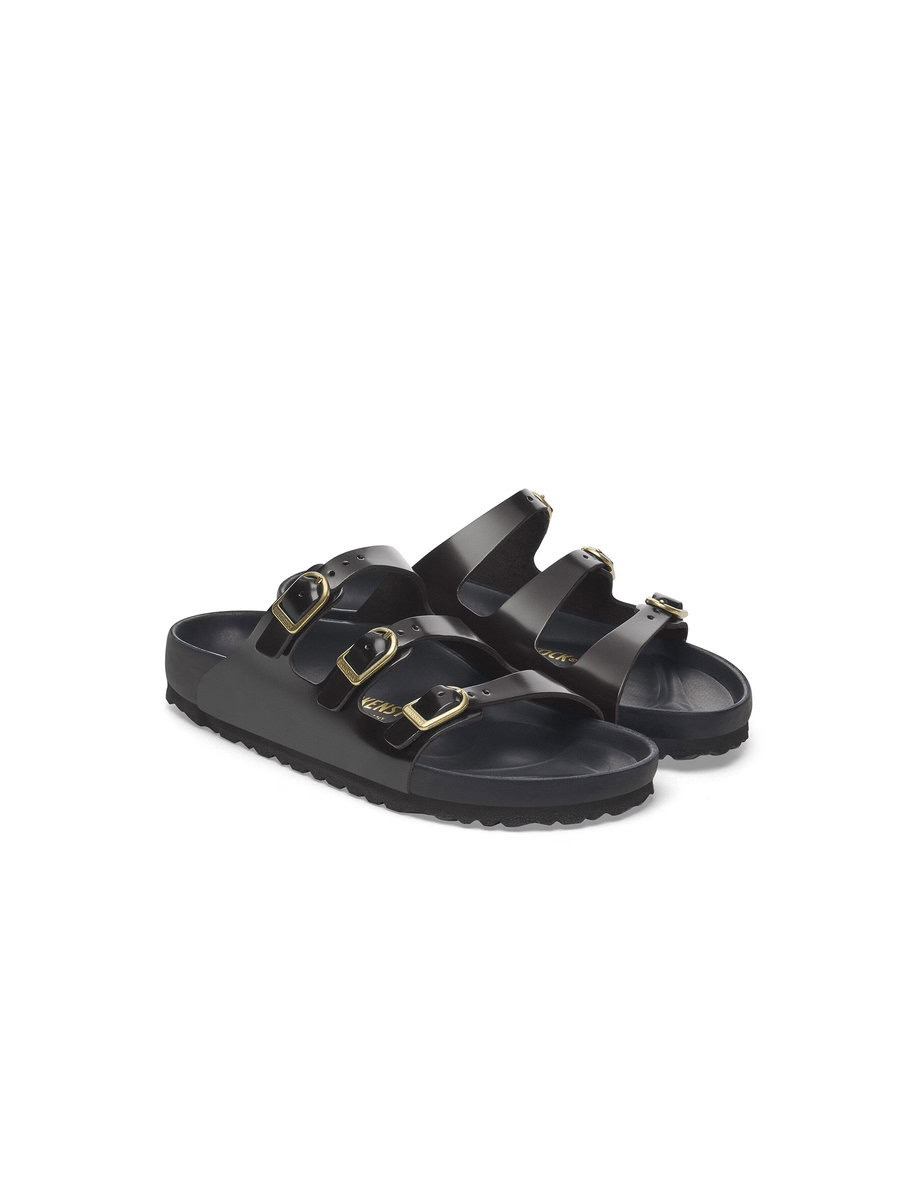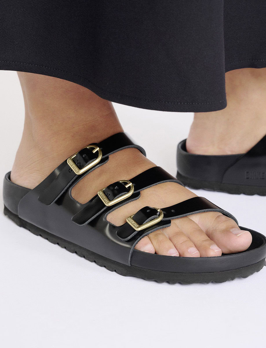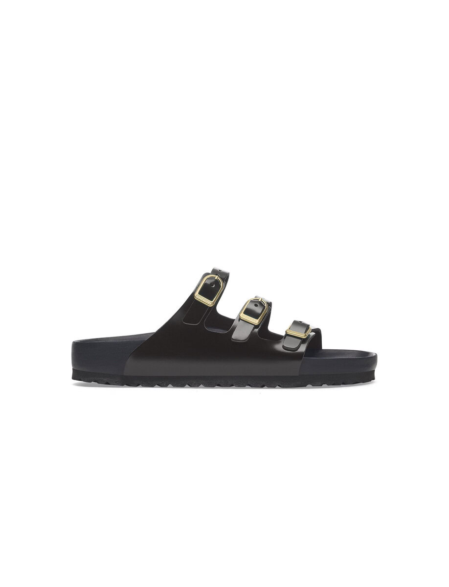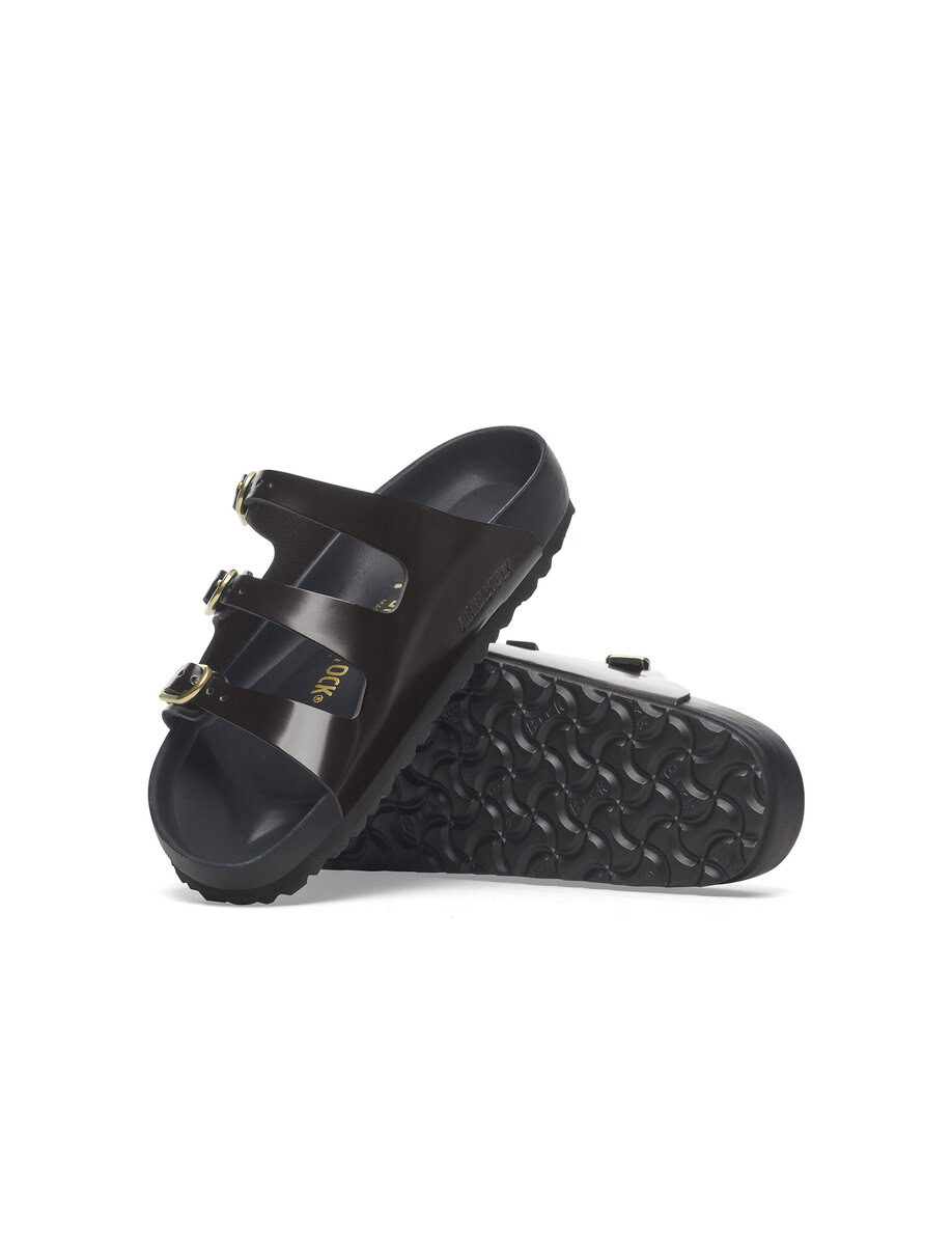 The BIRKENSTOCK Florida is the ideal sandal for anyone who spends a lot of time on their feet. This three-strap sandal offers good grip and maximum comfort. The exquisite footbed is fully lined with soft piumato leather, making it exceptionally comfortable. The delicate D buckles round off the sandal’s elegant appearance. The upper is made from high-quality natural leather with a shiny patent coating.
