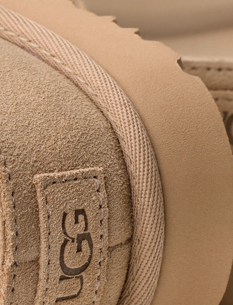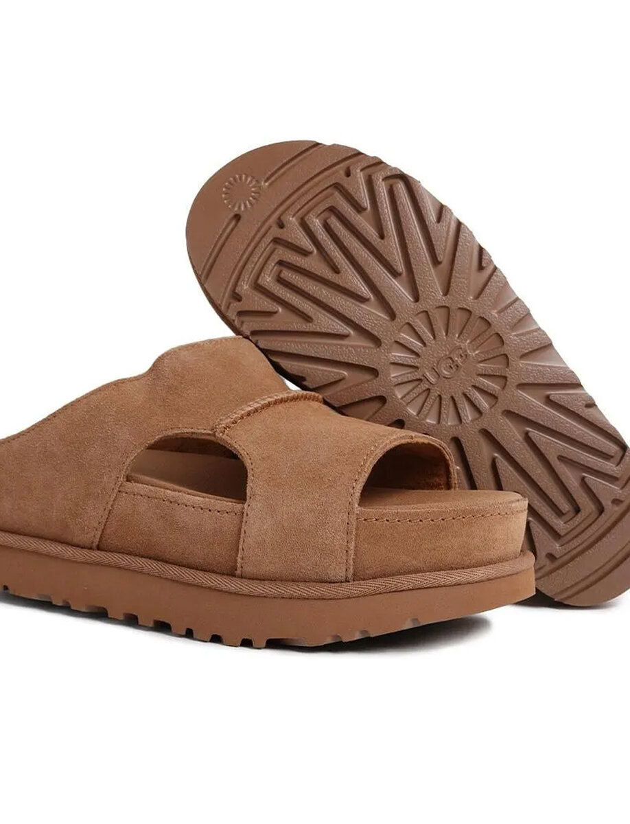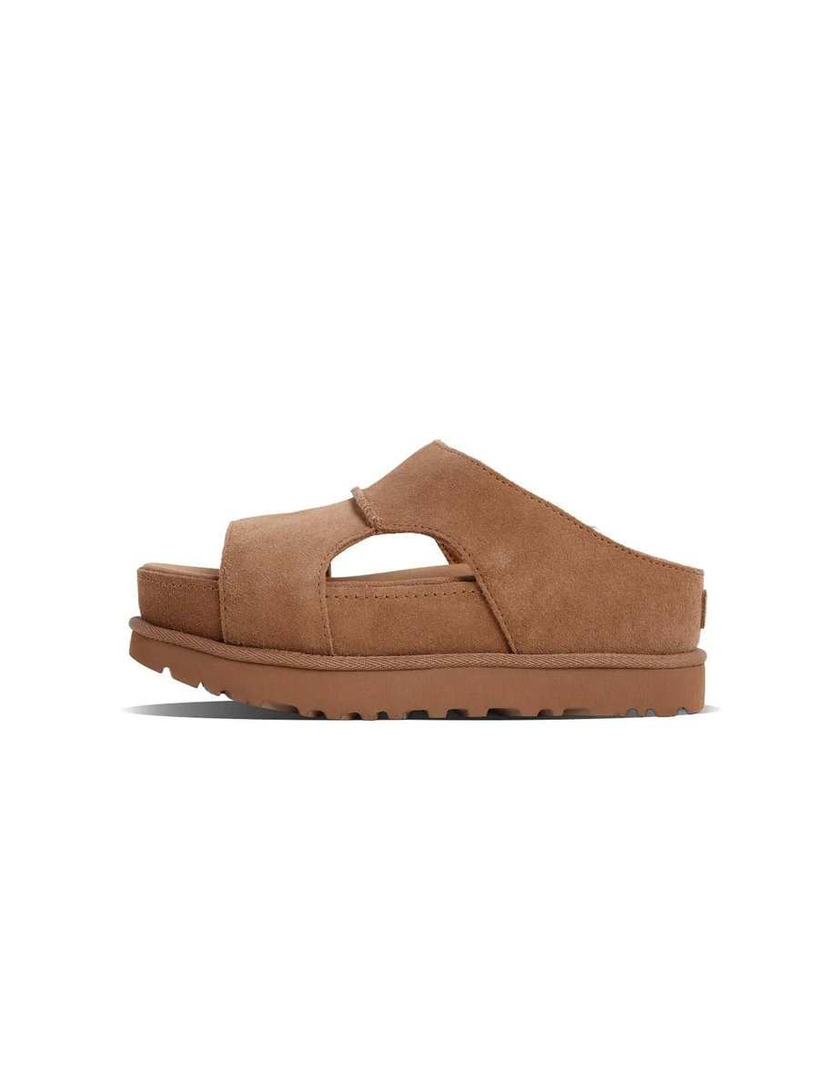 Hi, we’re new here. Our Goldenstar Hi Cutout Slide originates from our best-selling Goldenstar Hi Sandal, now in an easy slip-on-and-go slide. Crafted with side cutouts, this slide has a minimalist, architectural feel that makes an ideal companion to your summer style. Packed with premium details, it’s made from velvety suede and features a cushy, supportive foam footbed, and a lightweight sugarcane EVA outsole for all-day wear. Padded Twin Seam detailing adds that little extra something to this simple, but special, slide.