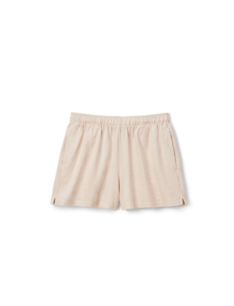 שורט בגזרה משוחררת ונוחה, עשוי בד קליל ונושם עם גומי אלסטי במותן לנוחות מקסימלית. מגיע עם כיסים צדדיים וסיומות קצרות עם חריץ קטן שמעניקים לו מראה פשוט אך מלא סטייל.