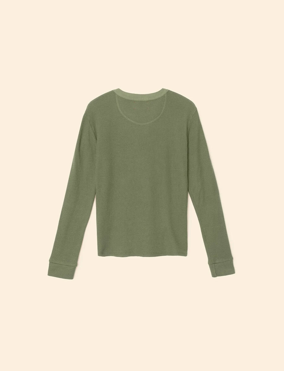 French allure meets California ease. Lucas is new this season in our soft cotton-blend waffle knit. This button-front henley top features a contrast woven cotton poplin placket for a lived-in look and feel.