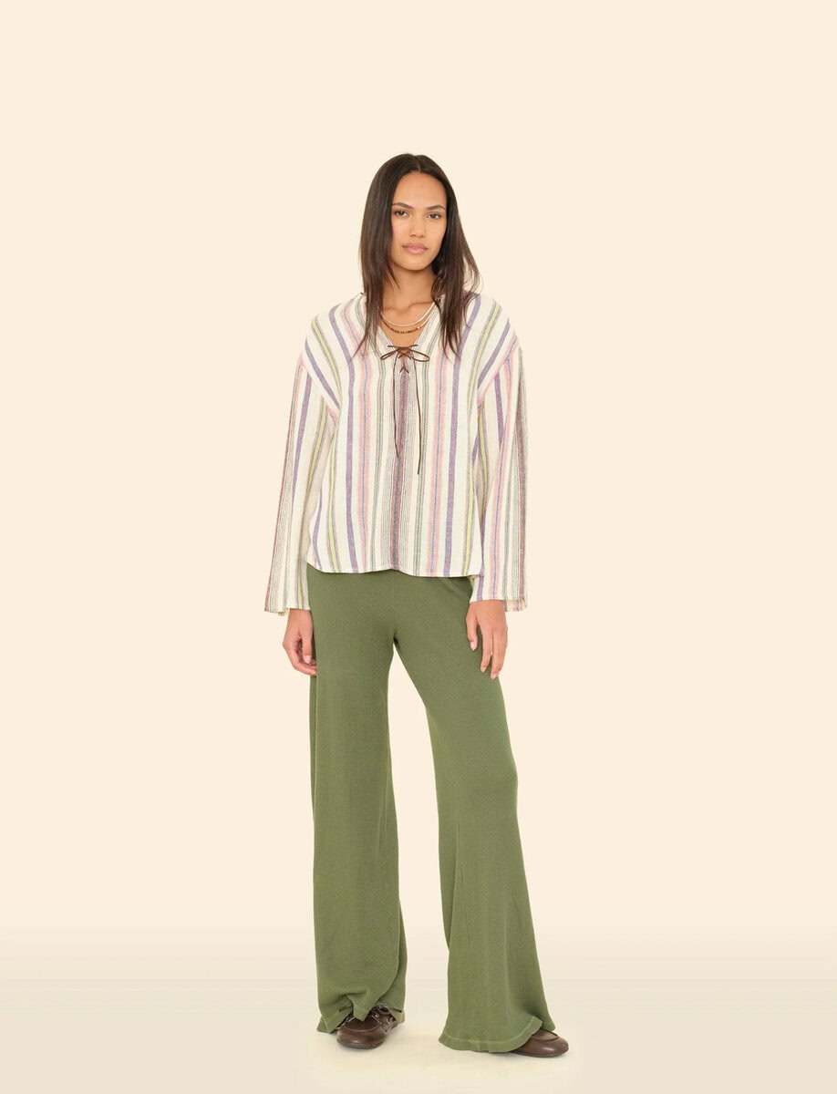 מכנסיים רחבים של Xirena עשויים בד סריג רך ונעים, עם גזרה משוחררת שמעניקה מראה קליל ואלגנטי.