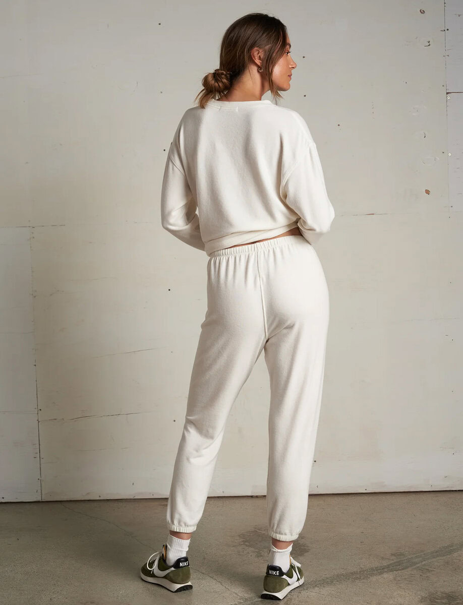 if you love our best-selling johnny jogger, then meet mare. the jogger that feels like winter weekends wrapped into a pair of pants. the brushed sweater jersey gives it that soft, inside-warmth you want when the weather drops, but the clean shape keeps it from ever feeling sloppy. the cuffs sit just right at the ankle, the waistband has that gentle stretch.