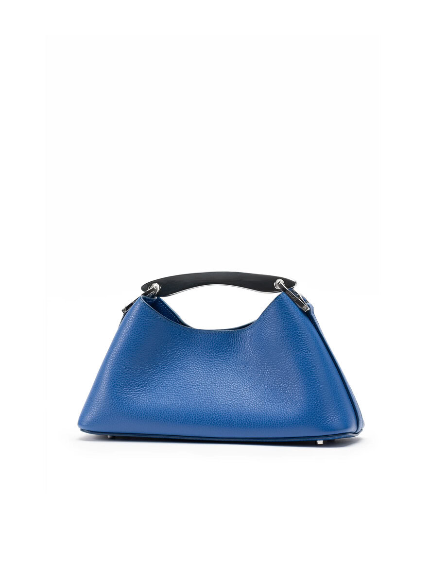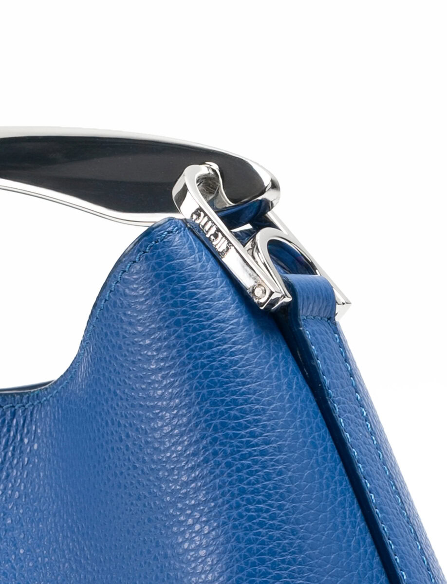 עשוי עור כחול חלק במראה מלוטש ומעוצב בקווים נקיים ואלגנטיים.