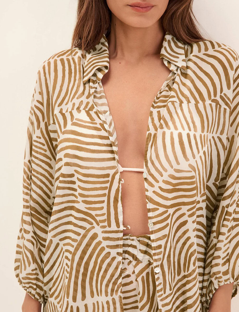 The ViX Moana Short Cover Up is a lightweight, effortless shirt-style layer featuring a spread collar, three-quarter sleeves, and button closures down the front. Designed with a striped print in varying widths, it adds a touch of relaxed sophistication to your beach-to-lunch look.