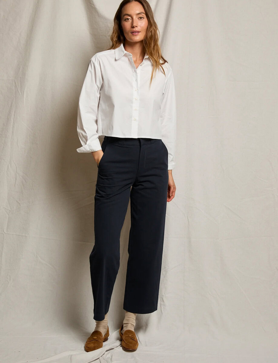 the naomi is our fresh, slightly cropped take on the classic long sleeve button-up. cut from crisp cotton poplin, it features an easy, boxy shape that feels modern and effortless. with its clean collar, it’s the perfect piece to pair with high-waisted anything.