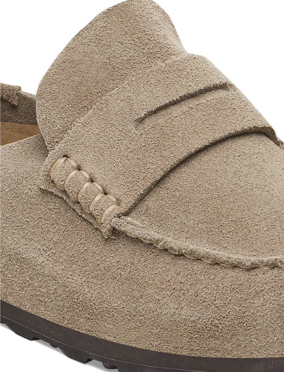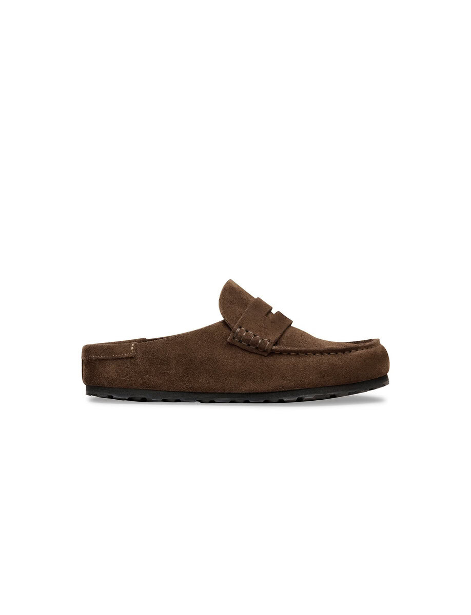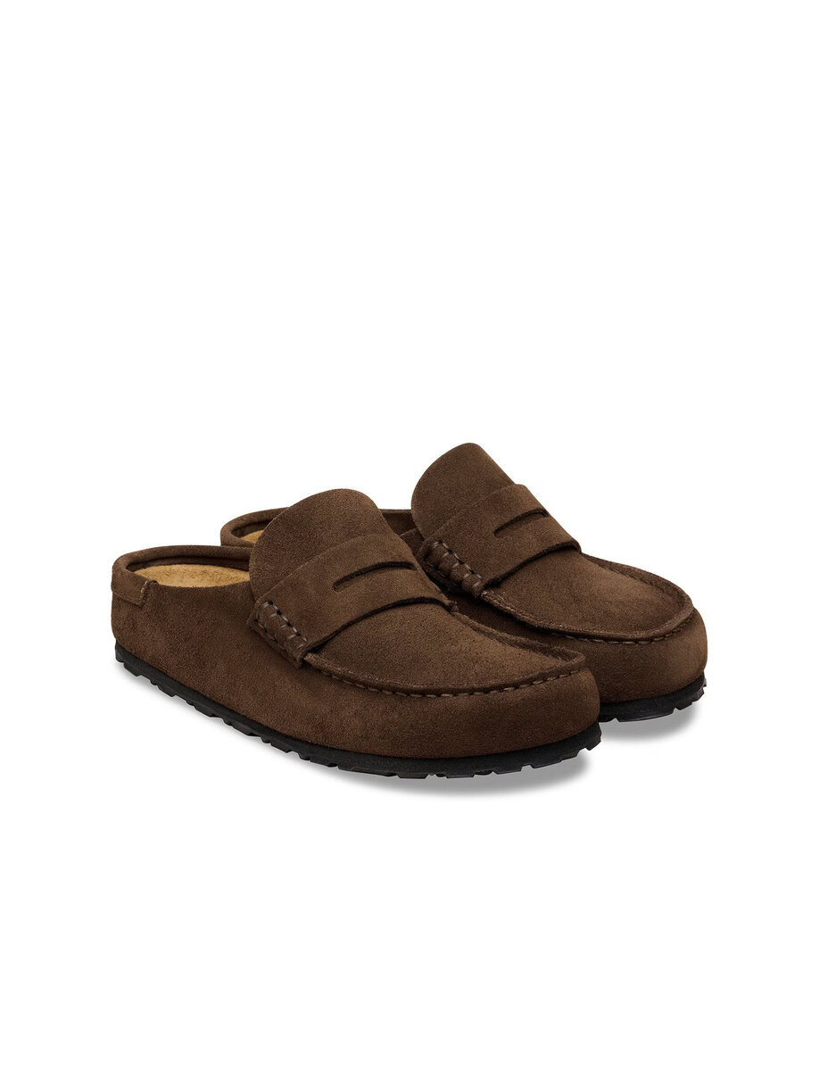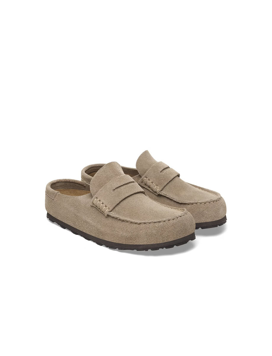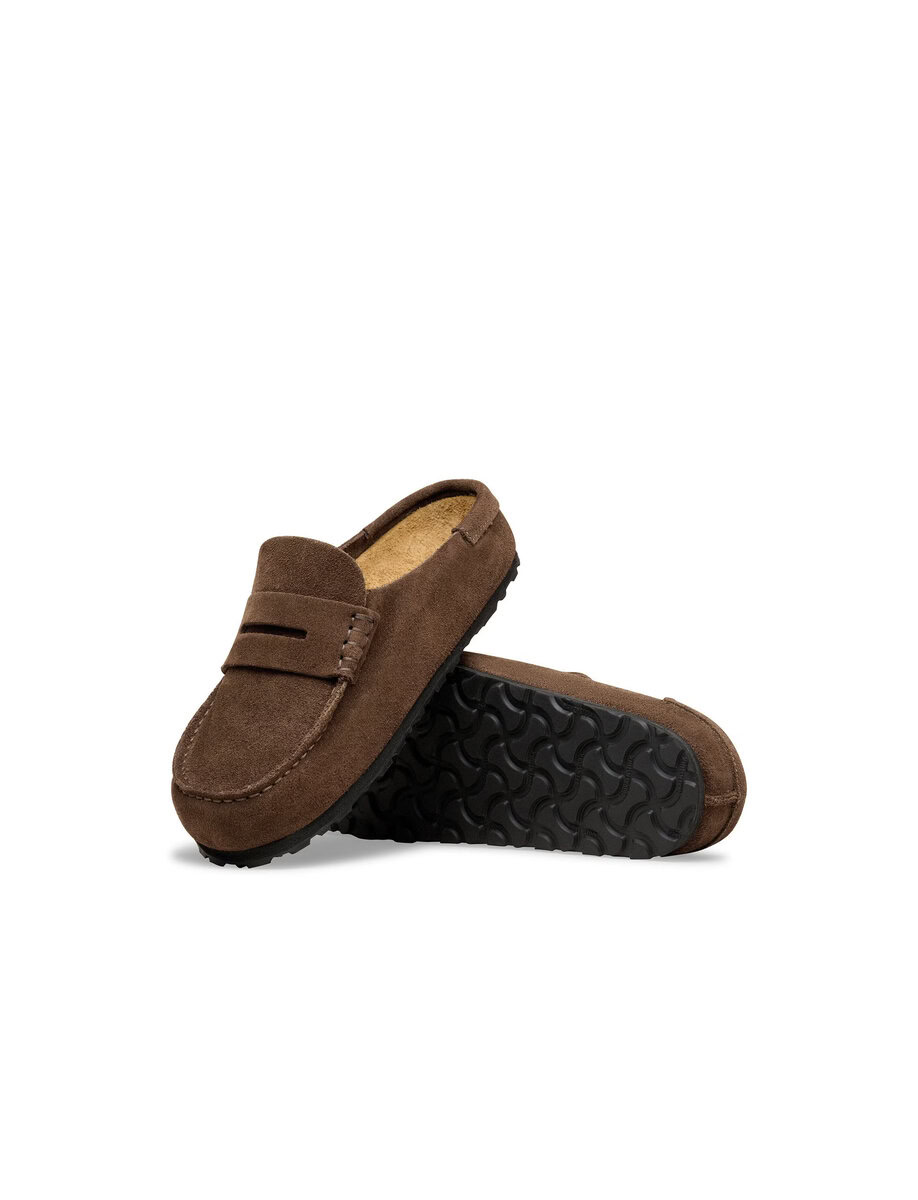The BIRKENSTOCK Naples Wrapped is the closed version of the popular semi-open Buckley clog. The moccasin style with striking stitching lends this sandal a distinctive and masculine appearance. Thanks to its two components, the sole promotes a firm and comfy footing. It comprises a cushioning midsole made from EVA and an outsole made from genuine rubber. Its natural design is down to the upper made from especially soft suede, which hugs the foot like a second skin.