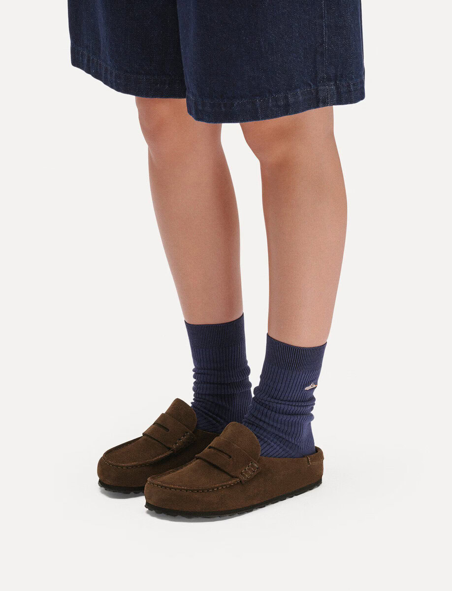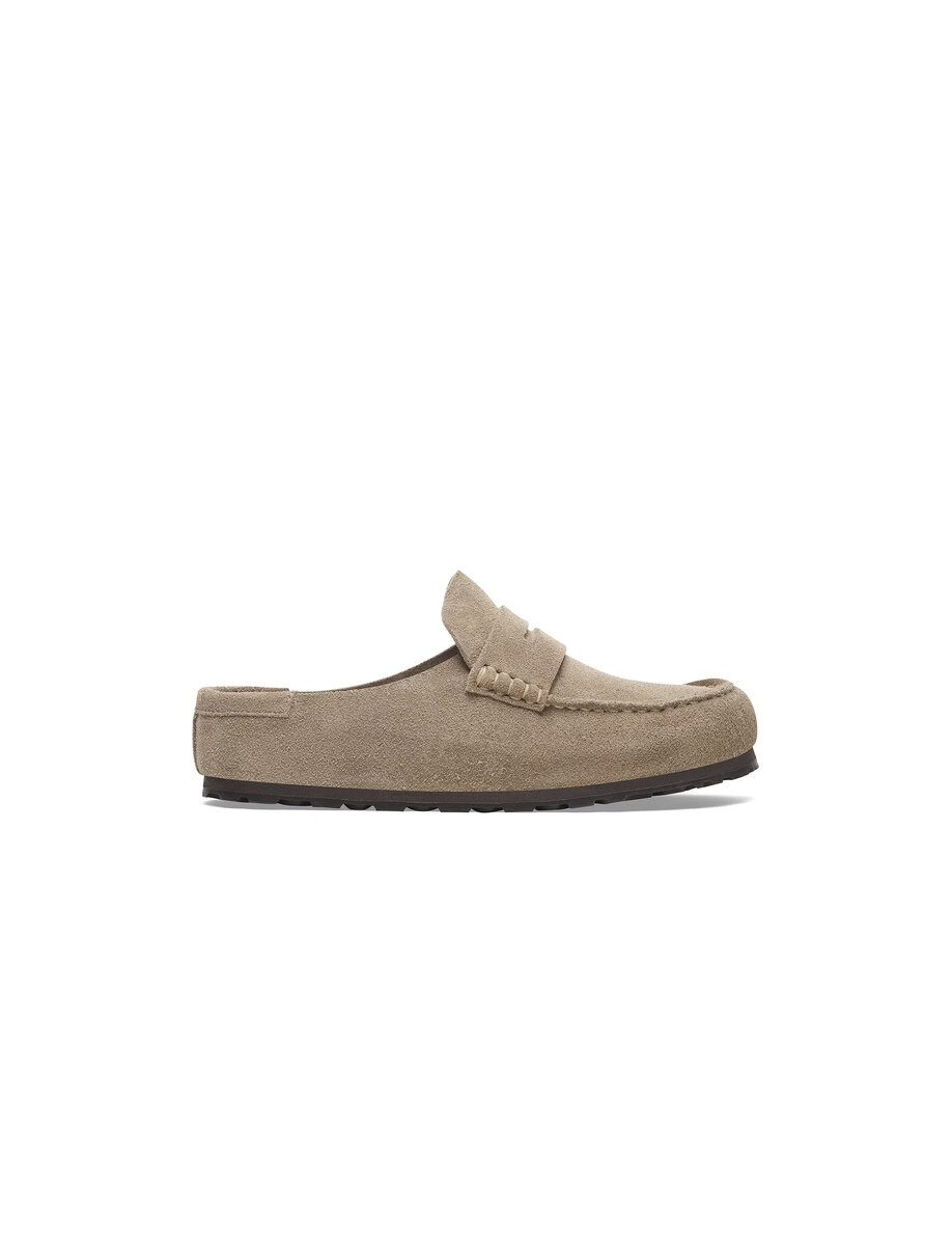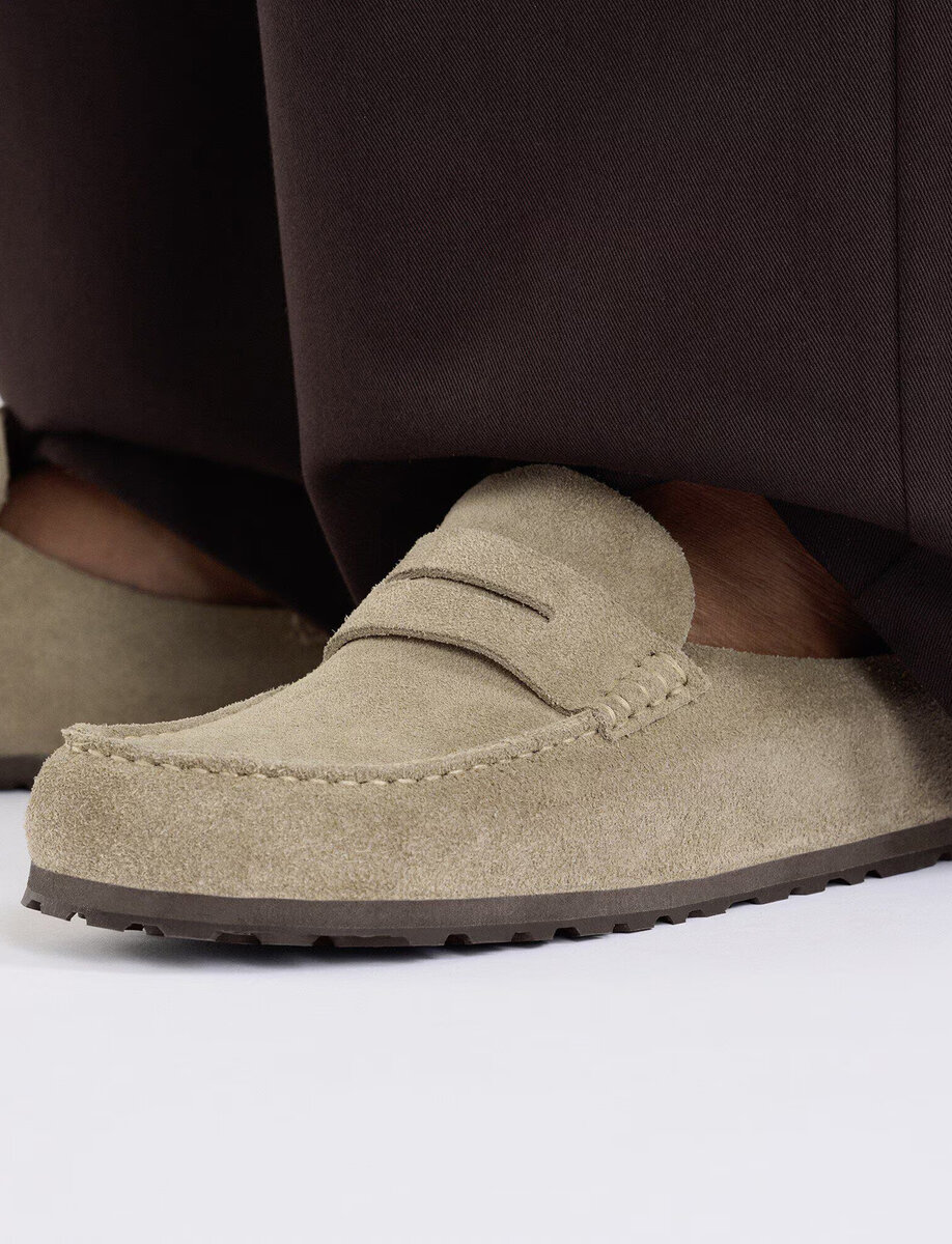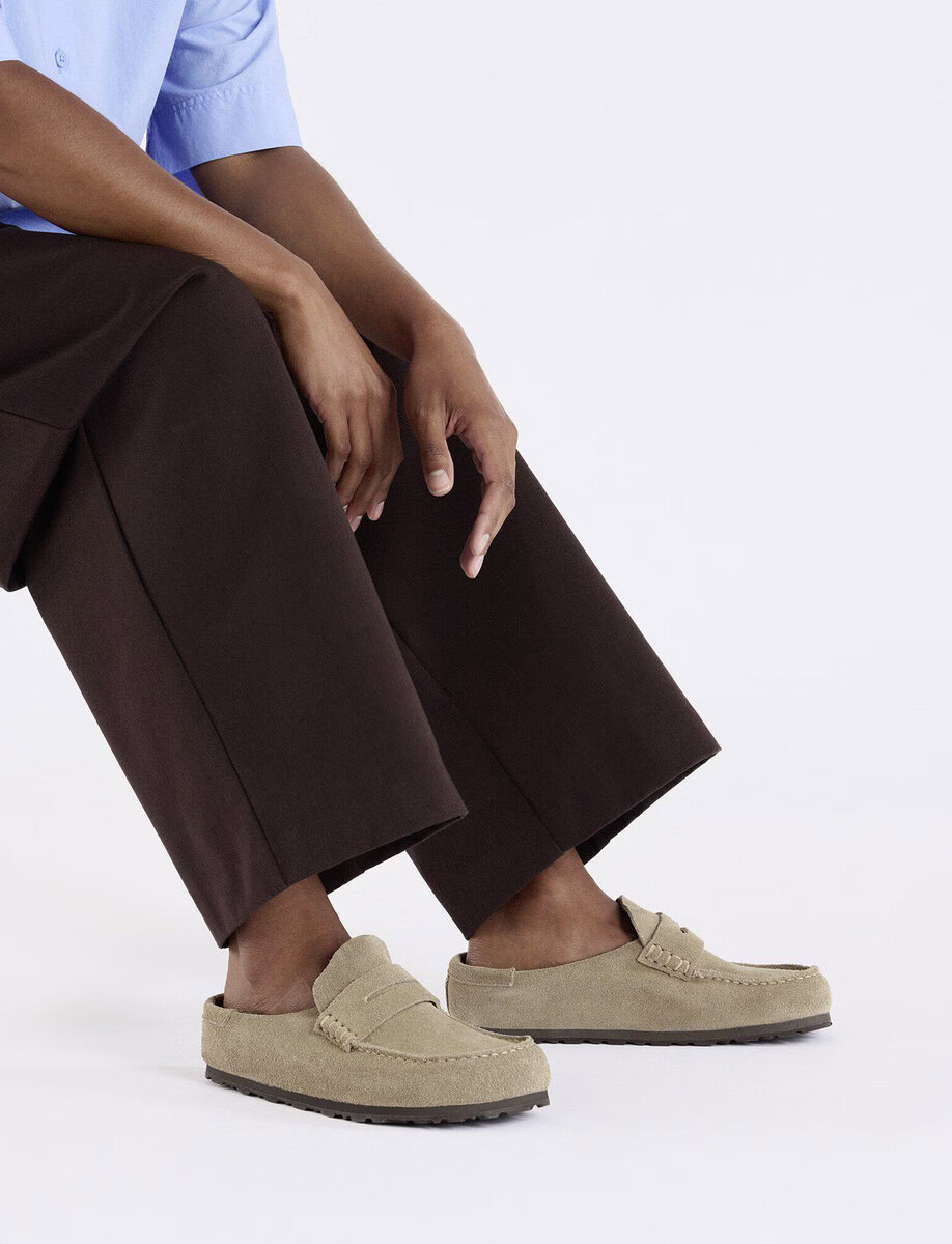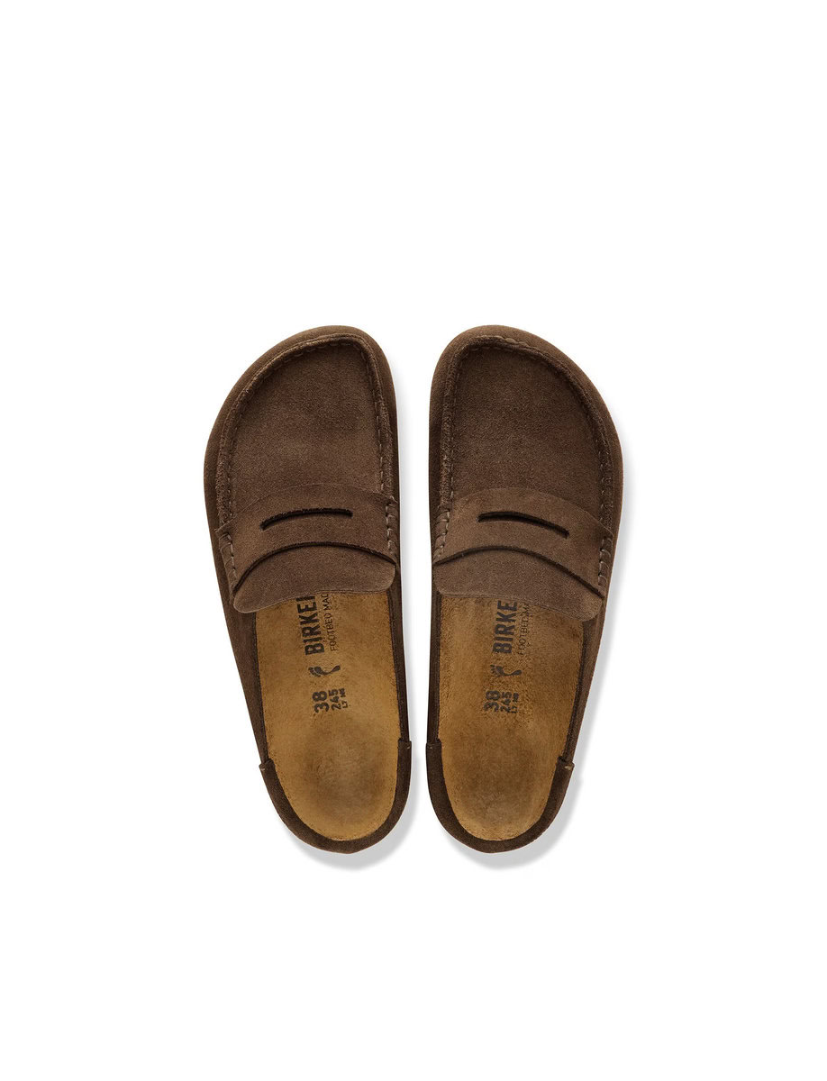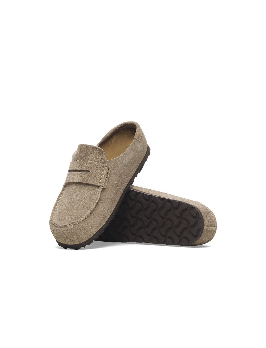 The BIRKENSTOCK Naples Wrapped is the closed version of the popular semi-open Buckley clog. The moccasin style with striking stitching lends this sandal a distinctive and masculine appearance. Thanks to its two components, the sole promotes a firm and comfy footing. It comprises a cushioning midsole made from EVA and an outsole made from genuine rubber. Its natural design is down to the upper made from especially soft suede, which hugs the foot like a second skin.