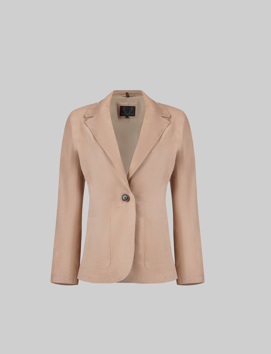 The NOIAN-S is a suede blazer with a clean classic shape. It features a single-button front a notched collar and two front pockets. Soft and easy to wear this blazer adds a touch of smart style to any outfit.
