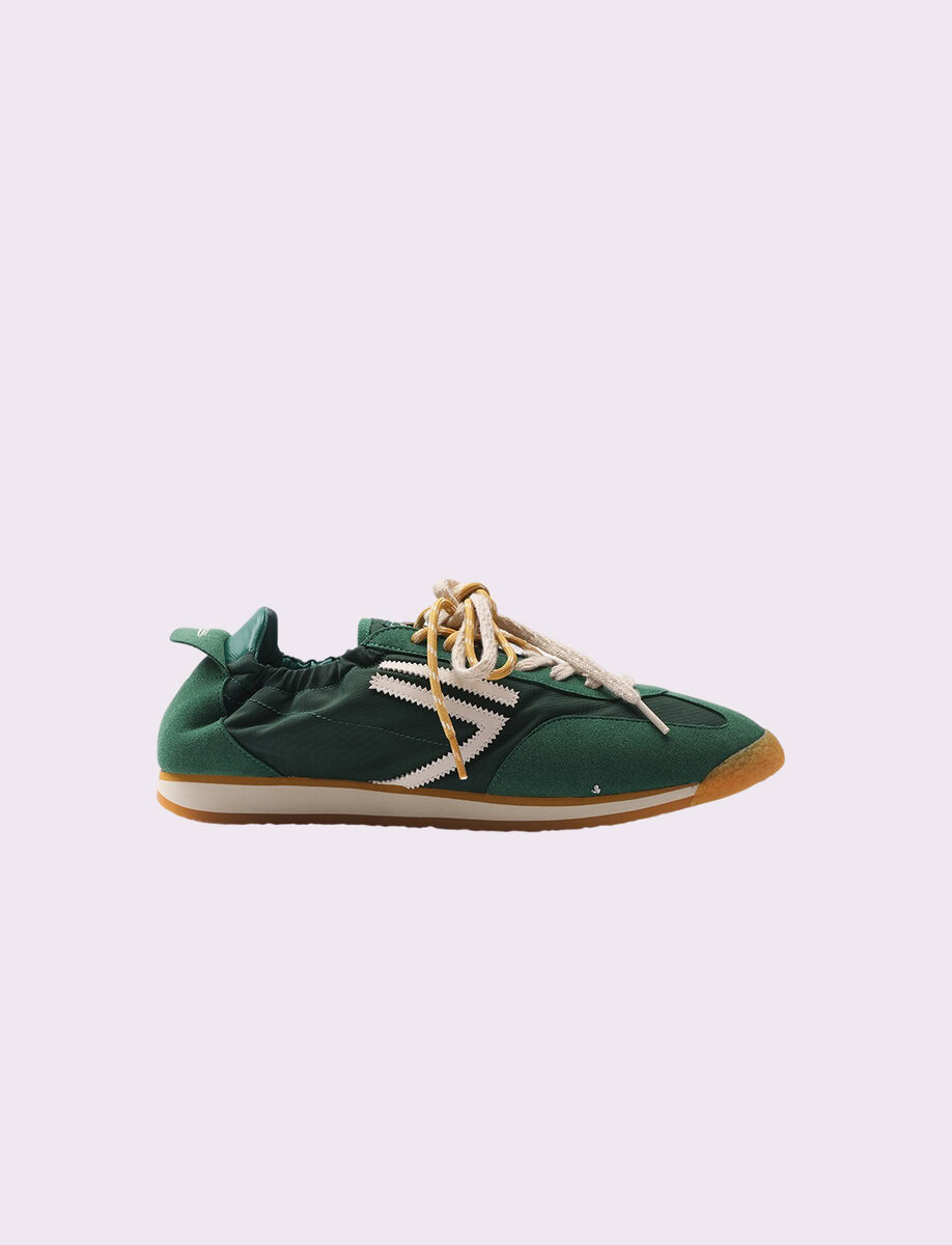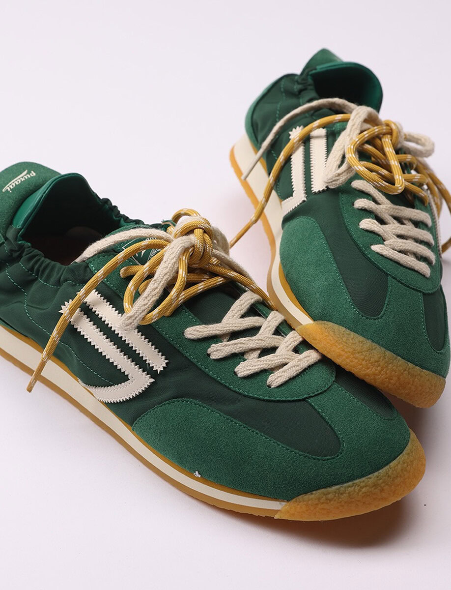 הסוליה מגיעה בגוונים של צהוב, בז’ בהיר ודבש, ושרוכים כפולים בצהוב ובז’ משלימים את המראה עם נגיעה שמחה ומקורית.