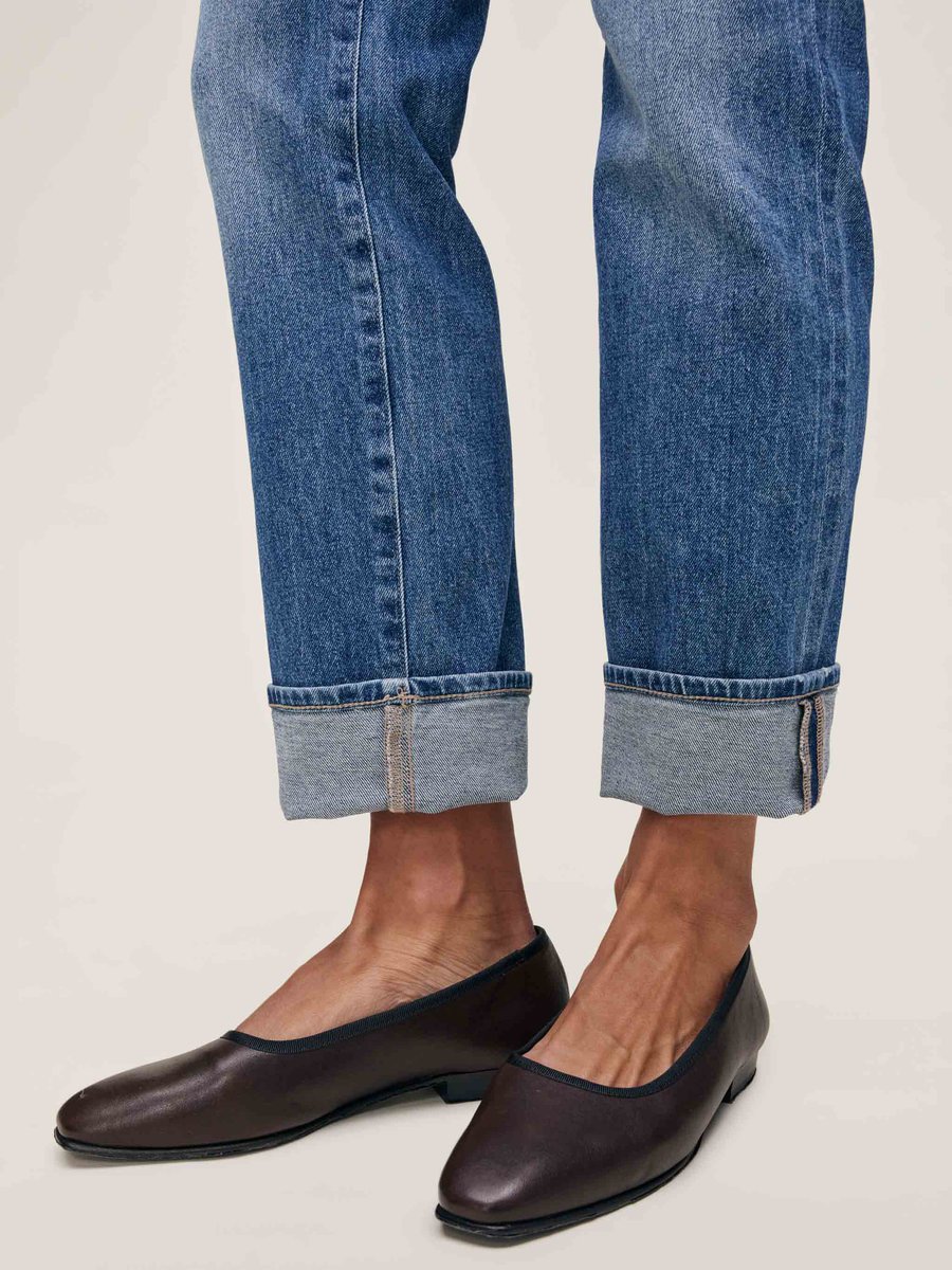ג’ינס בגזרה גבוהה עם קו סטרייט וינטג’ מחמיא. הגזרה משוחררת לאורך הרגל לנוחות מקסימלית תוך שמירה על מראה מחודד ועל–זמני.