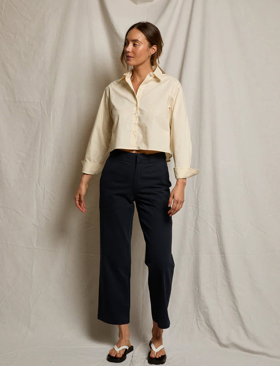 the pia is a timeless addition to our woven collection. Inspired by a vintage work pant, the pia features a mid rise, full-length and a classic straight-leg silhouette. with wide belt loops. These pants offer a clean, structured look that remains comfortable throughout the day.