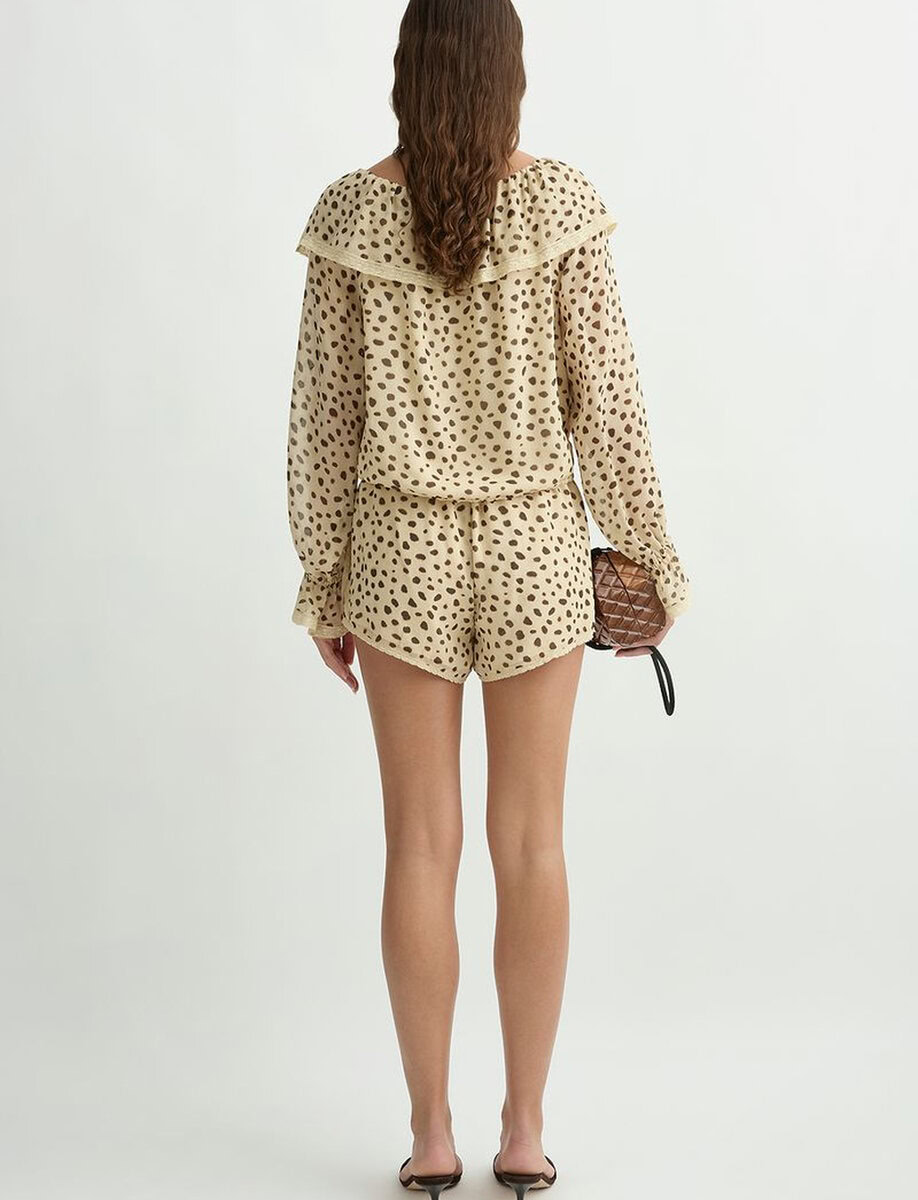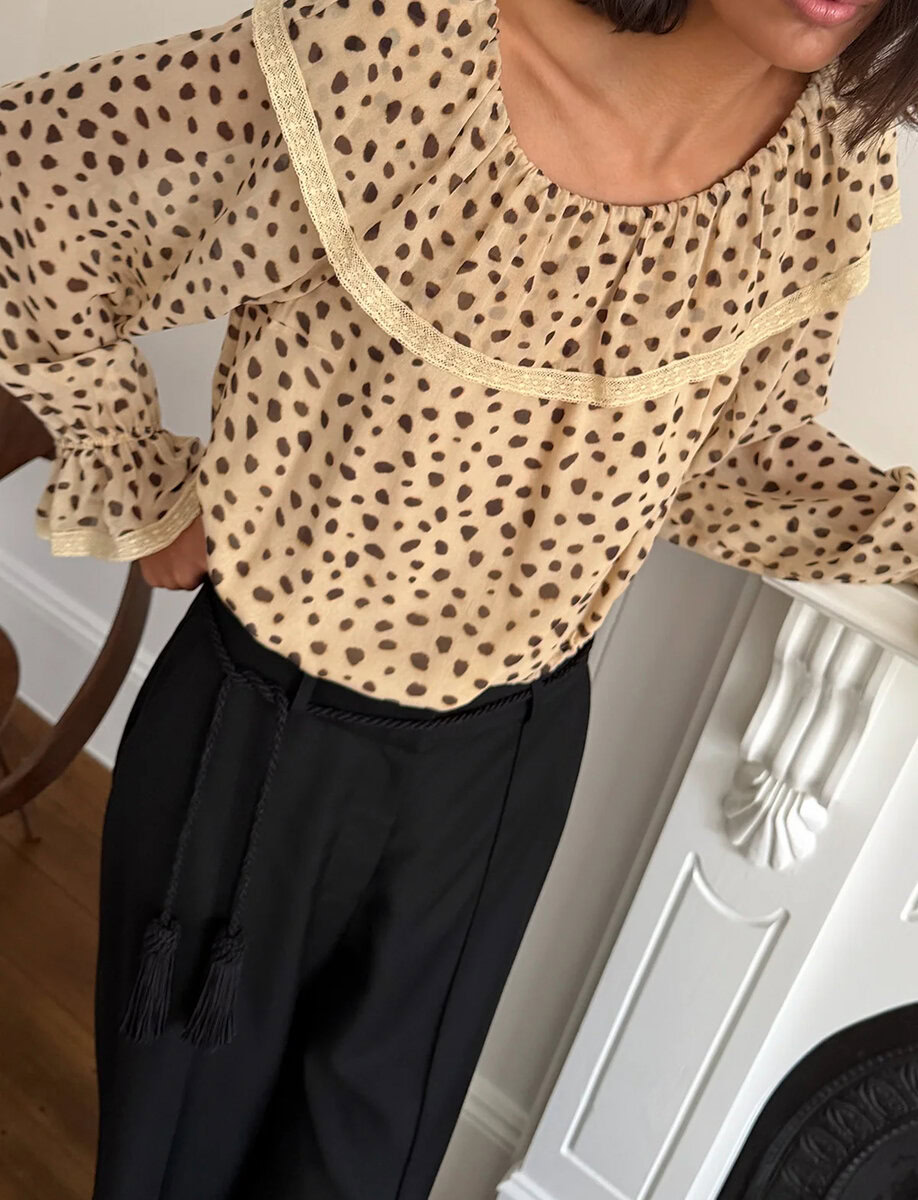 Crafted in lightweight silk georgette, our Priscilla Blouse is designed for a relaxed fit with soft, billowy sleeves. Featuring elasticated detailing at the neckline and cuffs, an adjustable waist tie to define the silhouette, it offers effortless elegance with a refined finish.