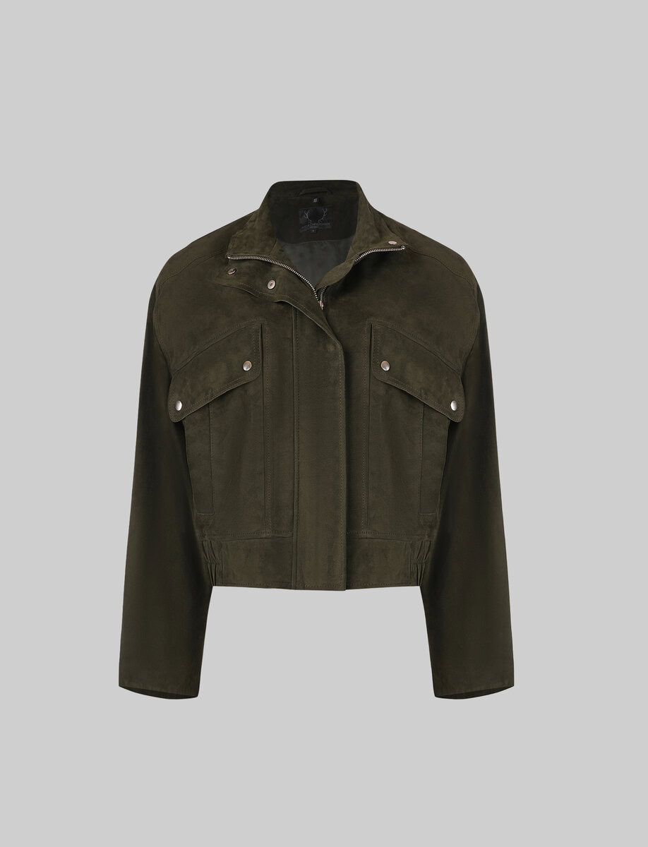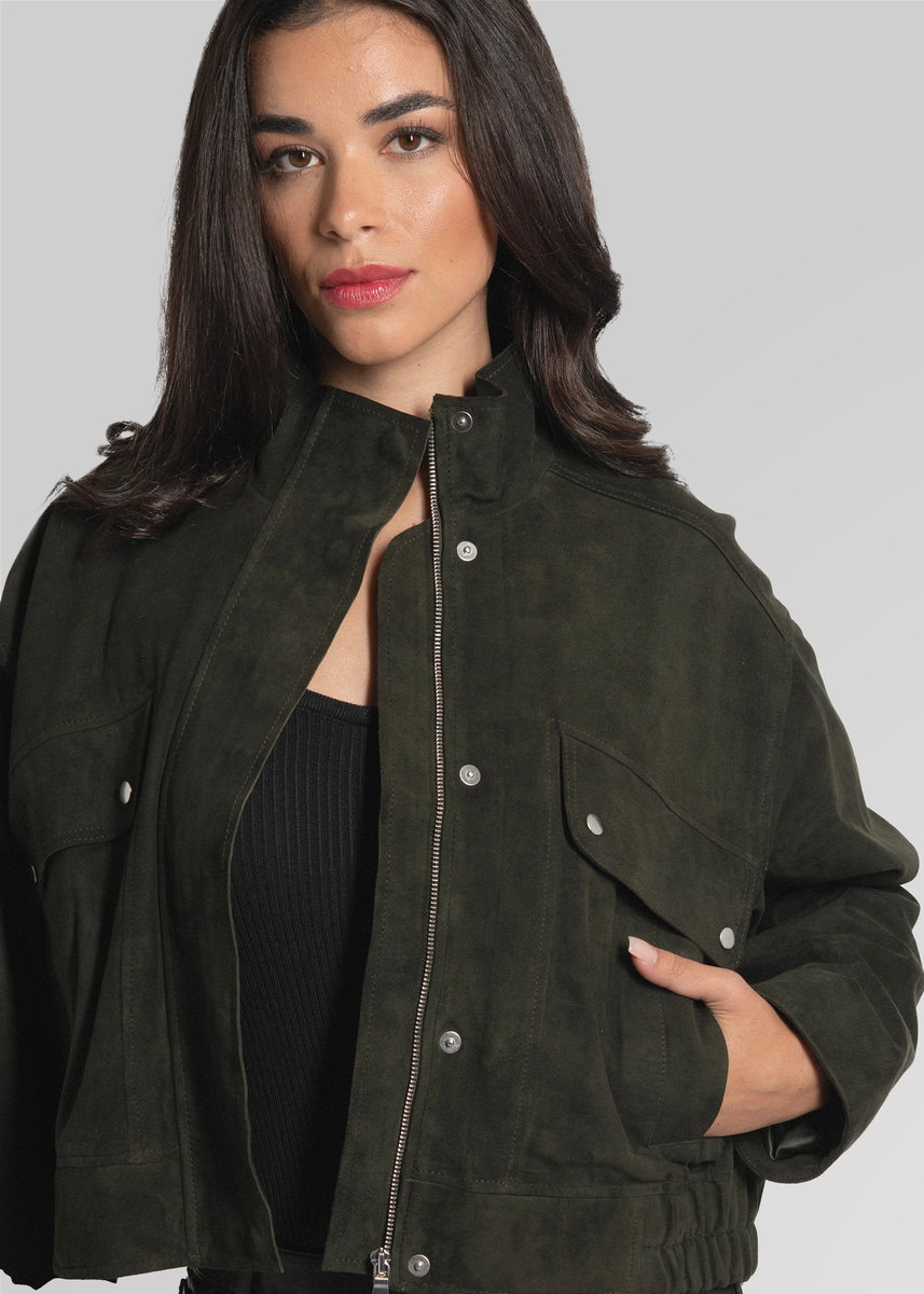 The ADRIAN-S is a modern suede jacket with a clean, angled front. It features an off-center zip closure, zip pockets, and a soft feel. Perfect for adding a fresh, stylish touch to any outfit.
