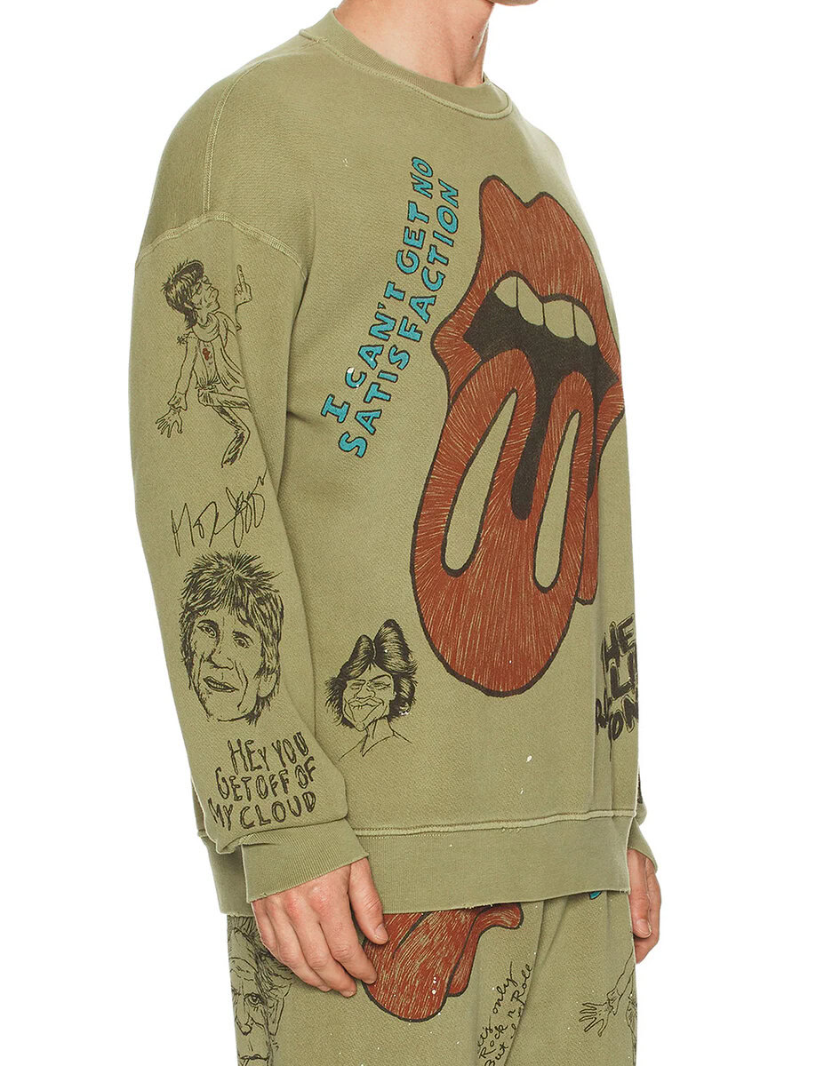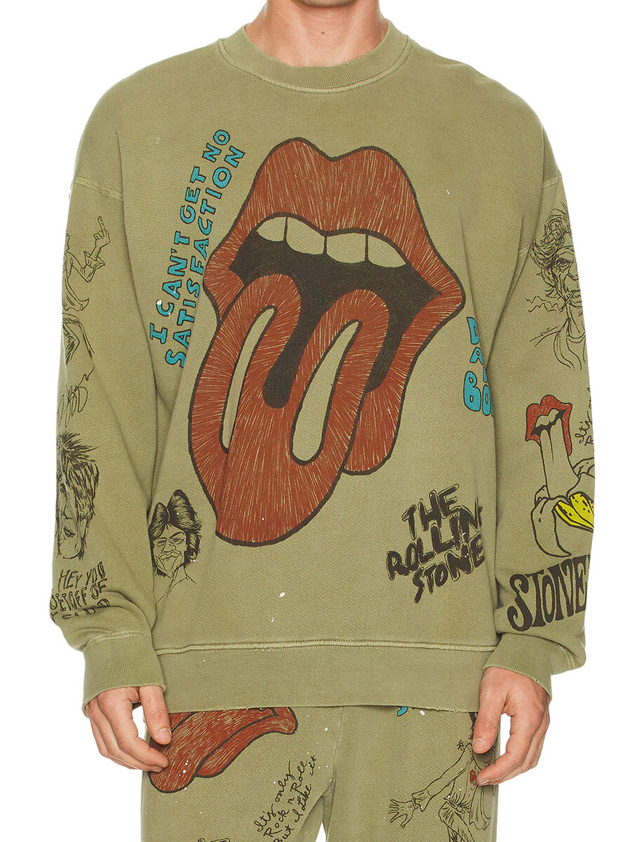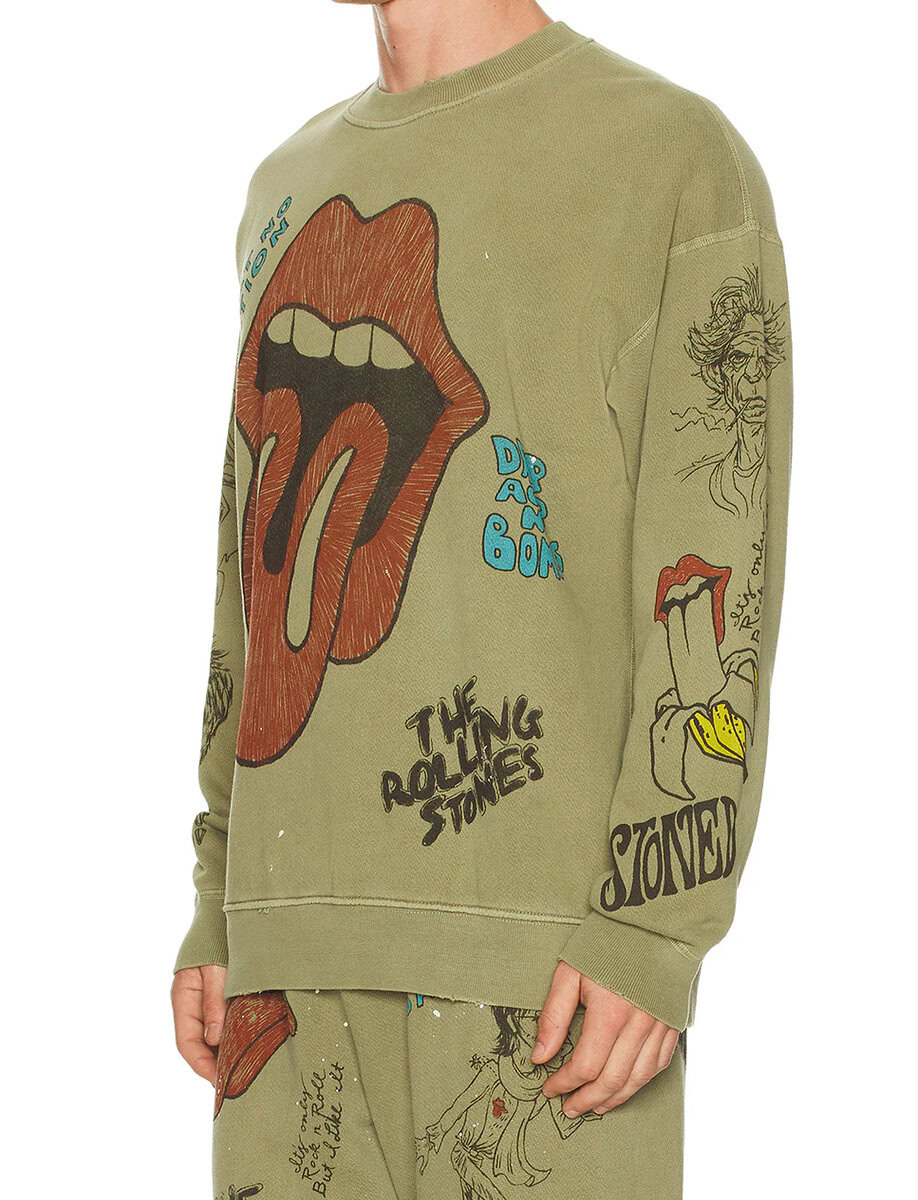 סווטשירט מכותנה 100% בהשראת The Rolling Stones, עם הדפסים אייקוניים וגרפיקות מאוירות שמעניקות לו נוכחות בולטת.