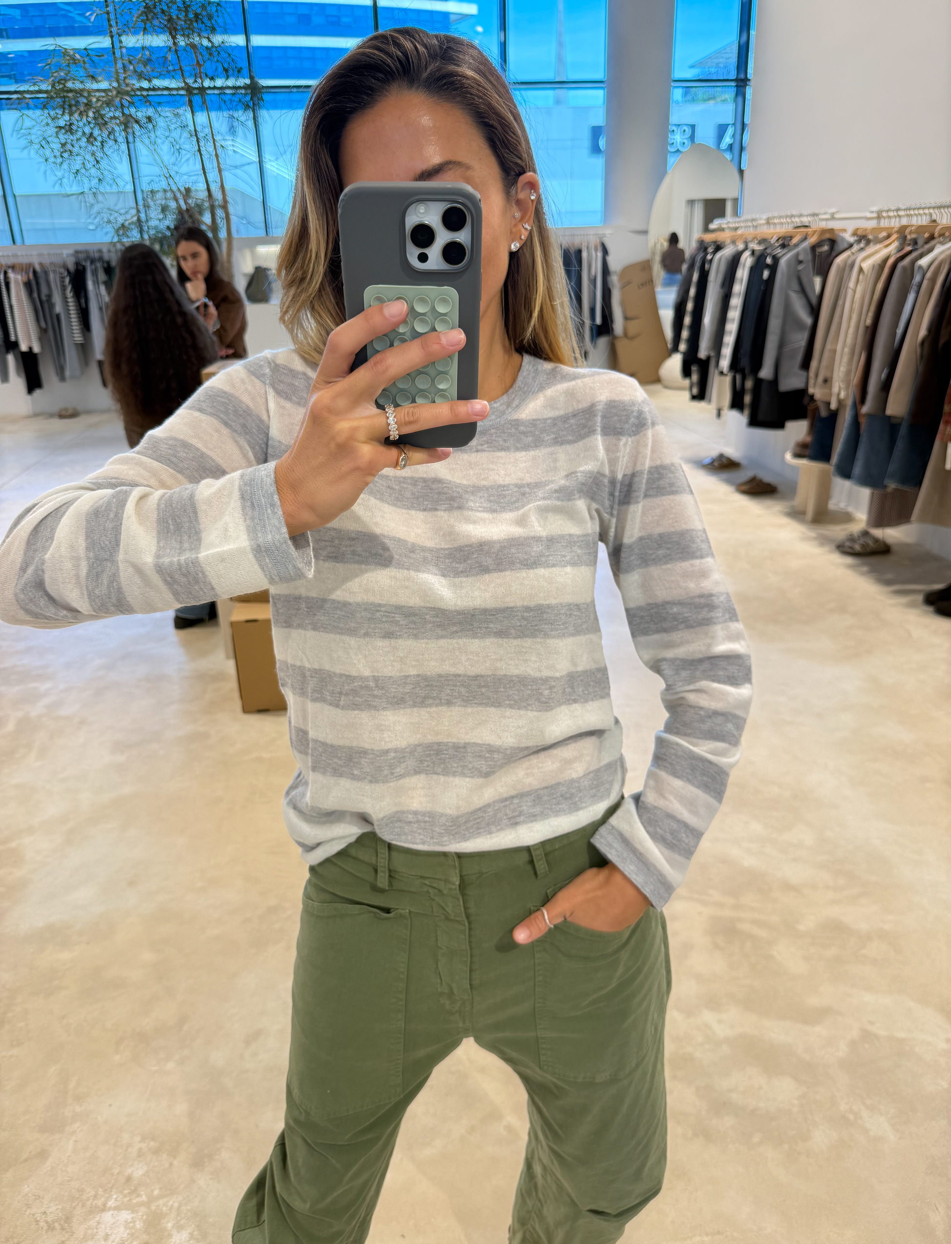 הדפס הפסים מעניק לה מראה פריזאי עדין – מושלם לשילוב עם ג׳ינס, חצאית או מתחת למעיל צמר למראה חורפי מלא שיק.