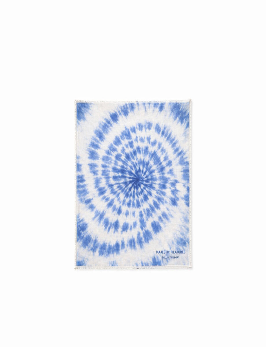 צעיף 100% קשמיר בדוגמת טאי דאי ייחודית, המשלב רכות יוצאת דופן עם נוכחות אופנתית.