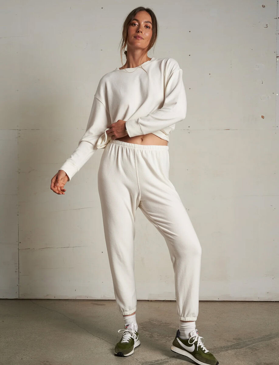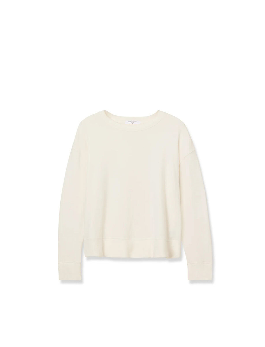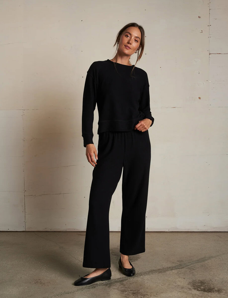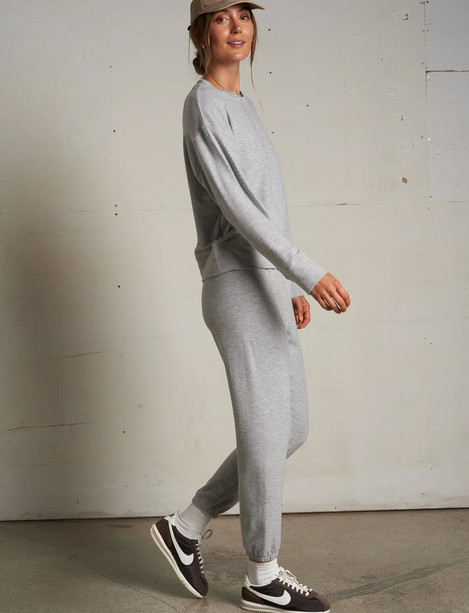 the selma is the pullover you reach for when the air turns crisp and the days feel slower. made in our brushed sweater jersey, it’s warm on the inside and smooth on the outside. the kind of layer you pull on before stepping out for a morning coffee or settling in at home. pairs perfectly with the matching marcie pant or your favorite denim. drop shoulder and wide hem make it a casual look in our elevated fabric.