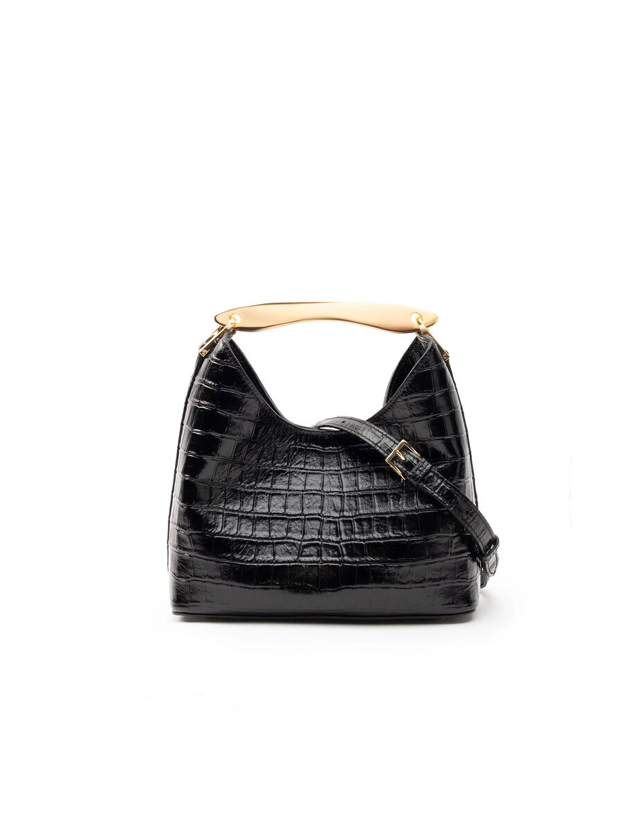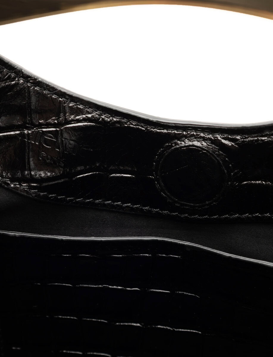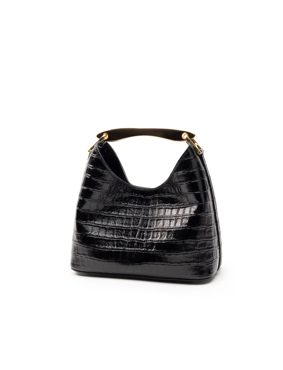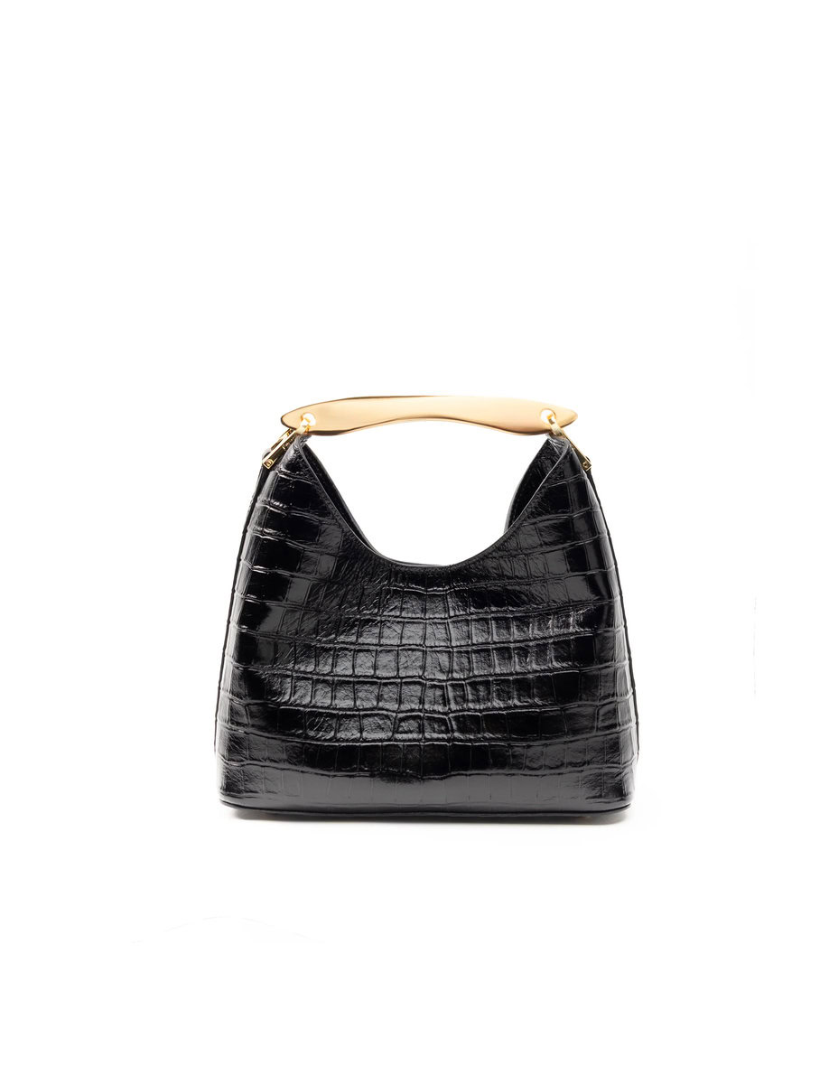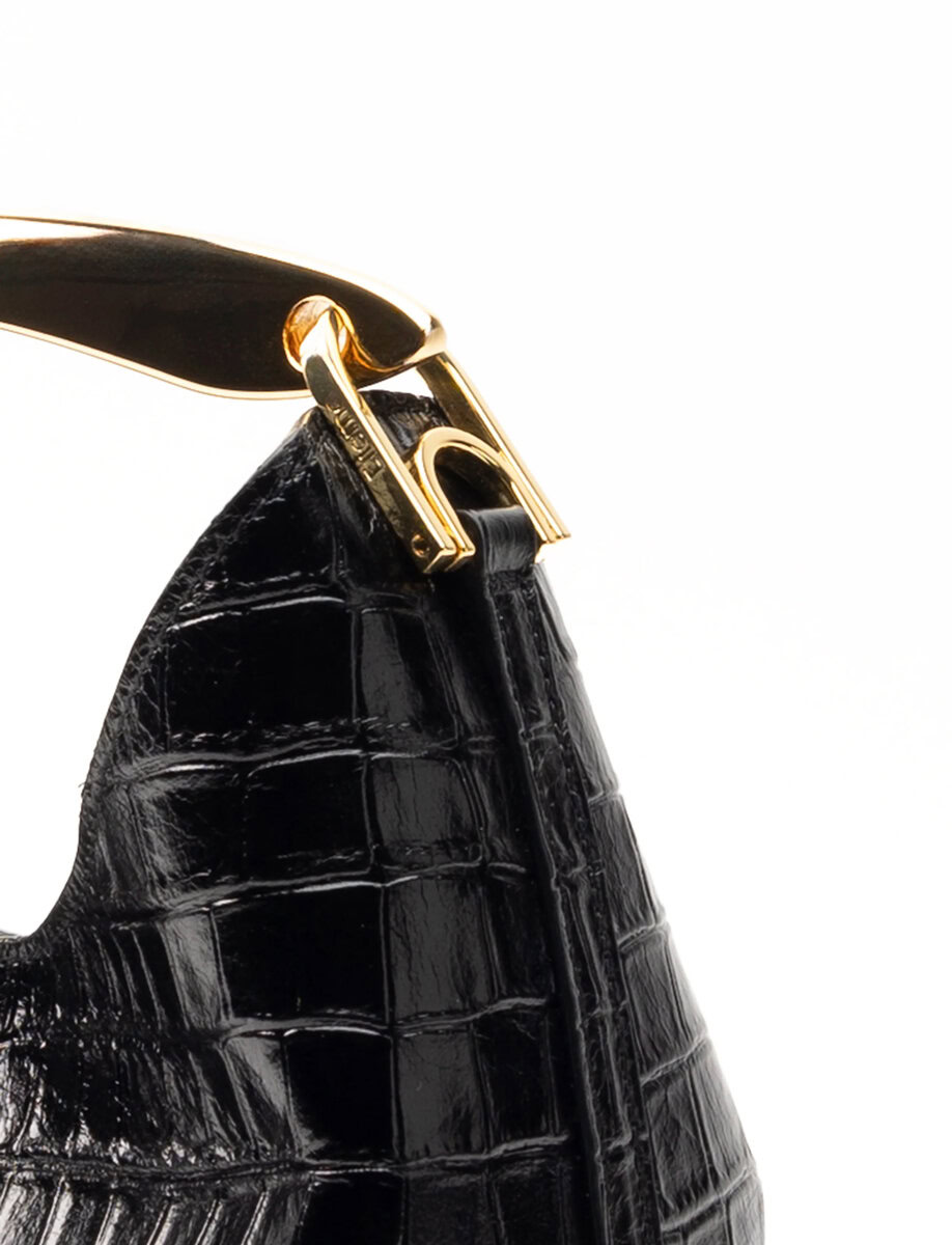 SMALL BOOMERANG CROCO LEATHER | BLACK