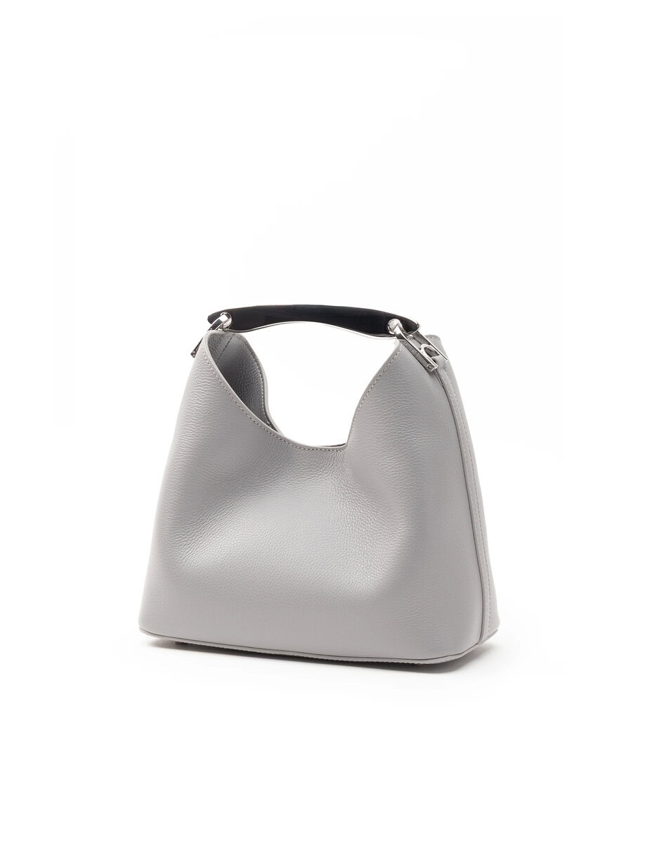 SMALL BOOMERANG PEBBLED LEATHER | GREY