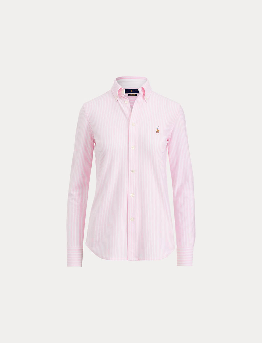 Ralph Lauren’s first ever piece of women’s clothing wasn’t a dress or a coat. It was an oxford shirt, made in the same factory that produced his men’s version, remade for a woman. Since that shirt’s debut in 1971, Ralph Lauren has designed countless variations of his iconic shirt, and this slim-cut, breathable cotton piqué version combines the tailoring of a traditional oxford with the comfort and ease of a Polo shirt.